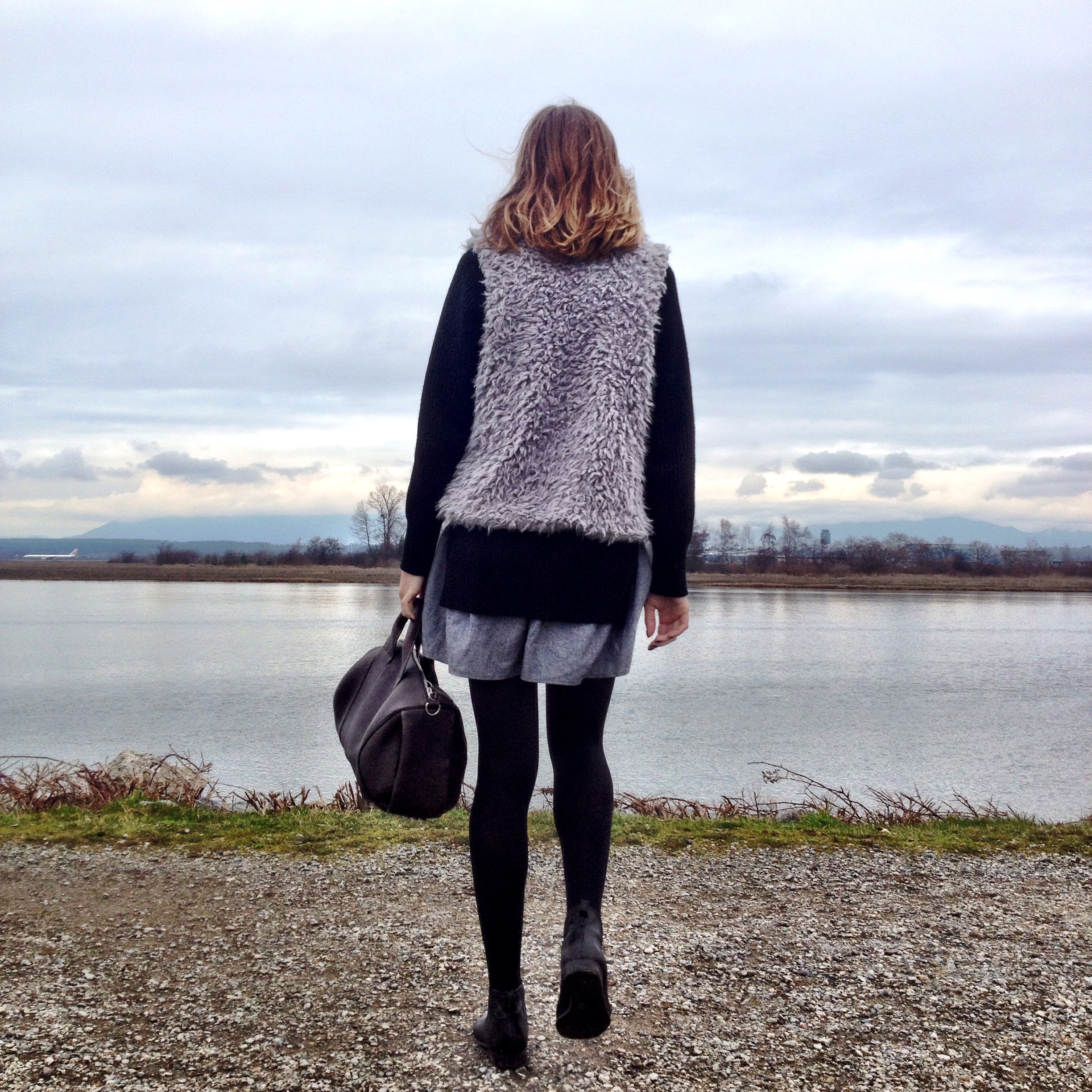 Nothing a little layering can’t fix! Been awhile since I wore this vest and it’s surprisingly warm, especially paired with a sweater. Probably because it’s so fuzzy.