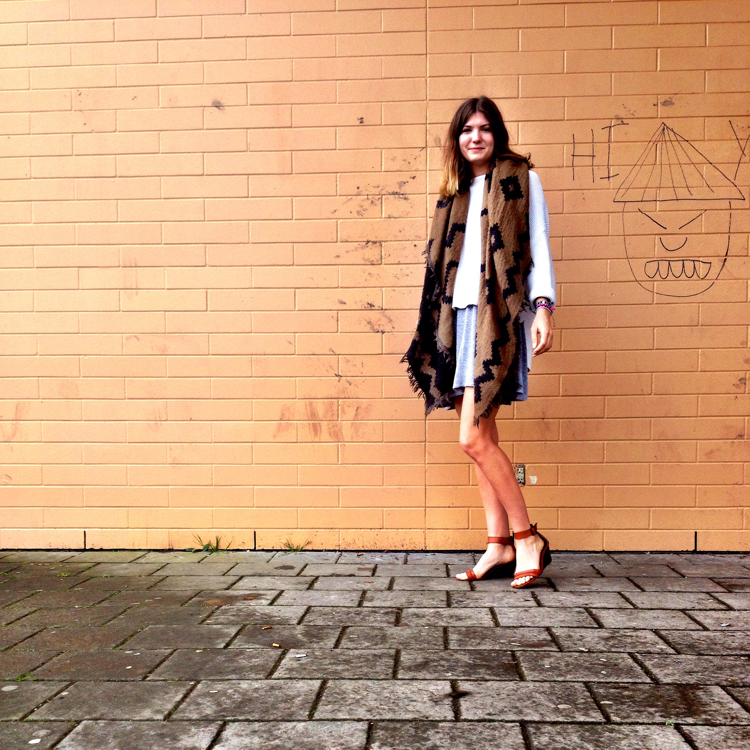 great outfit simple and lovely the scarf is gorgeous gives it the finishing touch