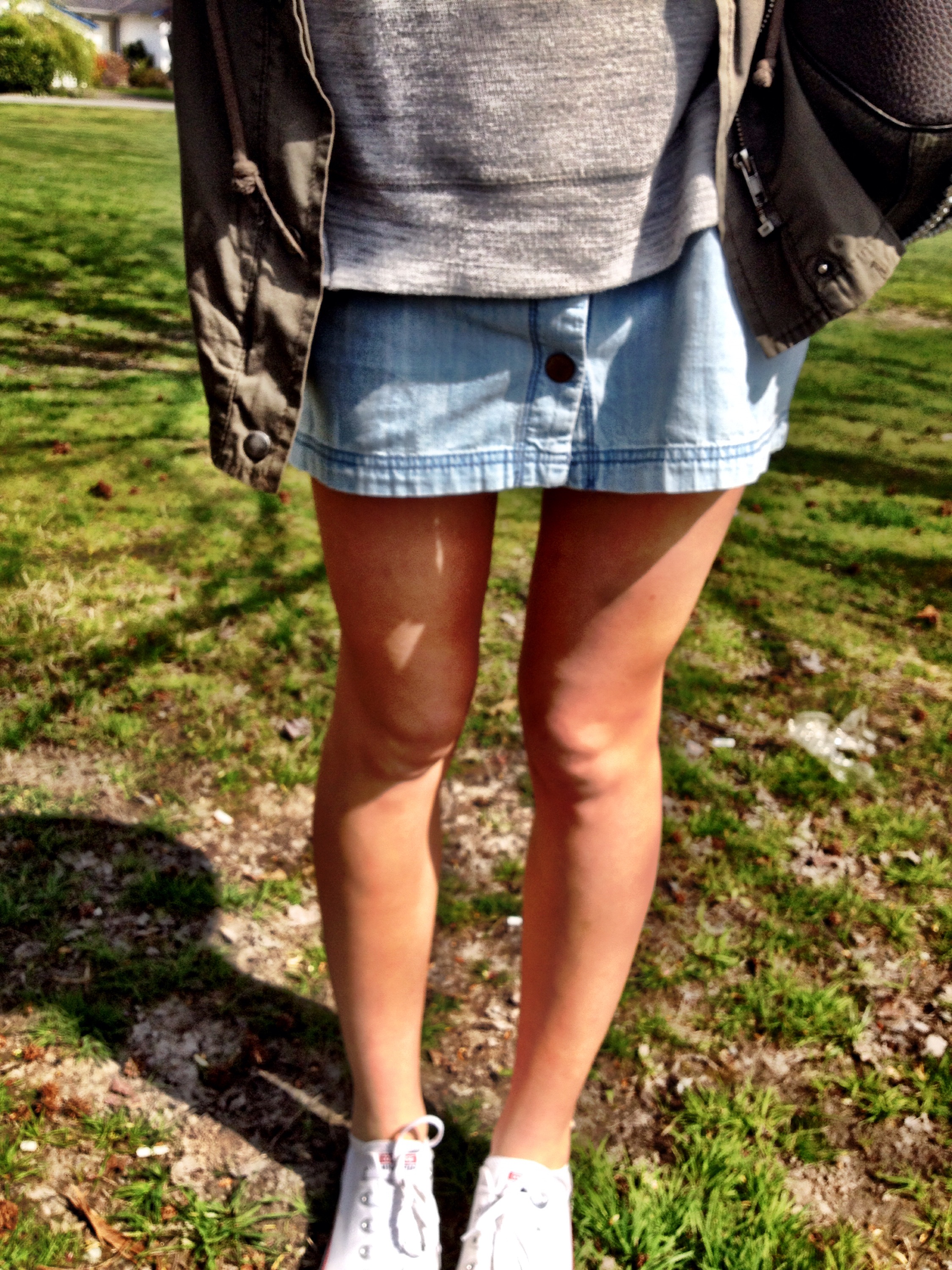 Sometimes I get fashion inspiration from blogs, magazines and clothing stores, but a lot of the time I also see girls around the city who are doing it so right and get ideas from them. Last week at work another manager and I helped a young woman who was wearing a light denim skirt, which we both proceeded to lust over.