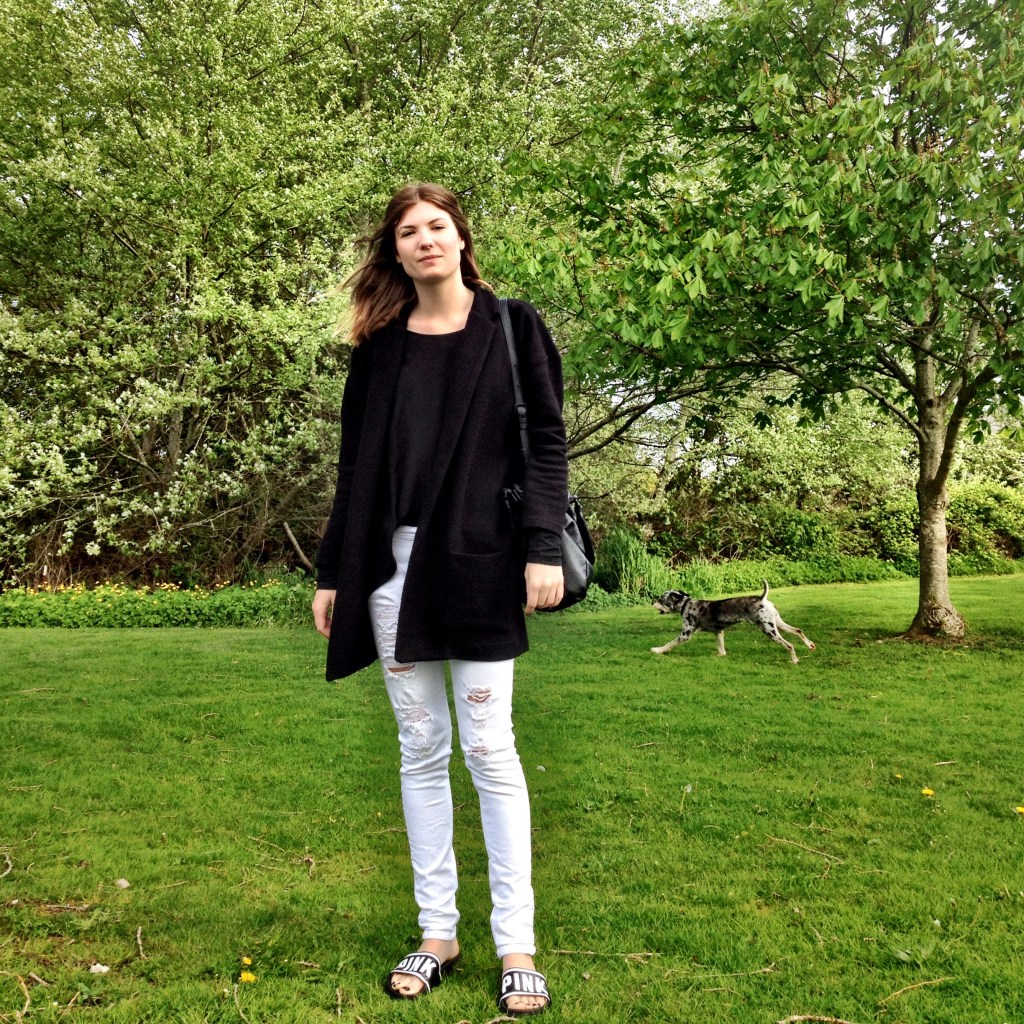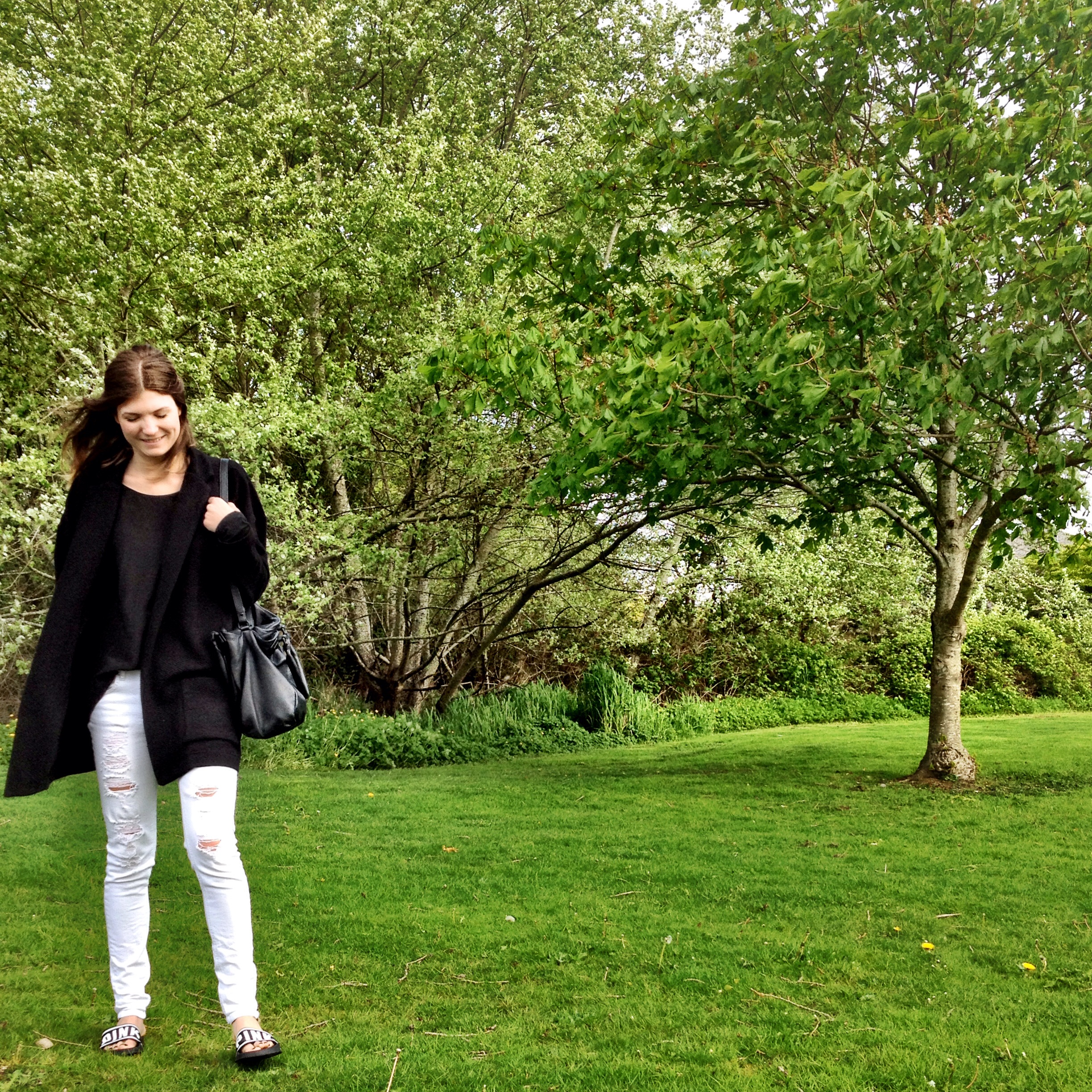 Since one element is so dressed down, I kept the rest of my outfit simple in just black and white.