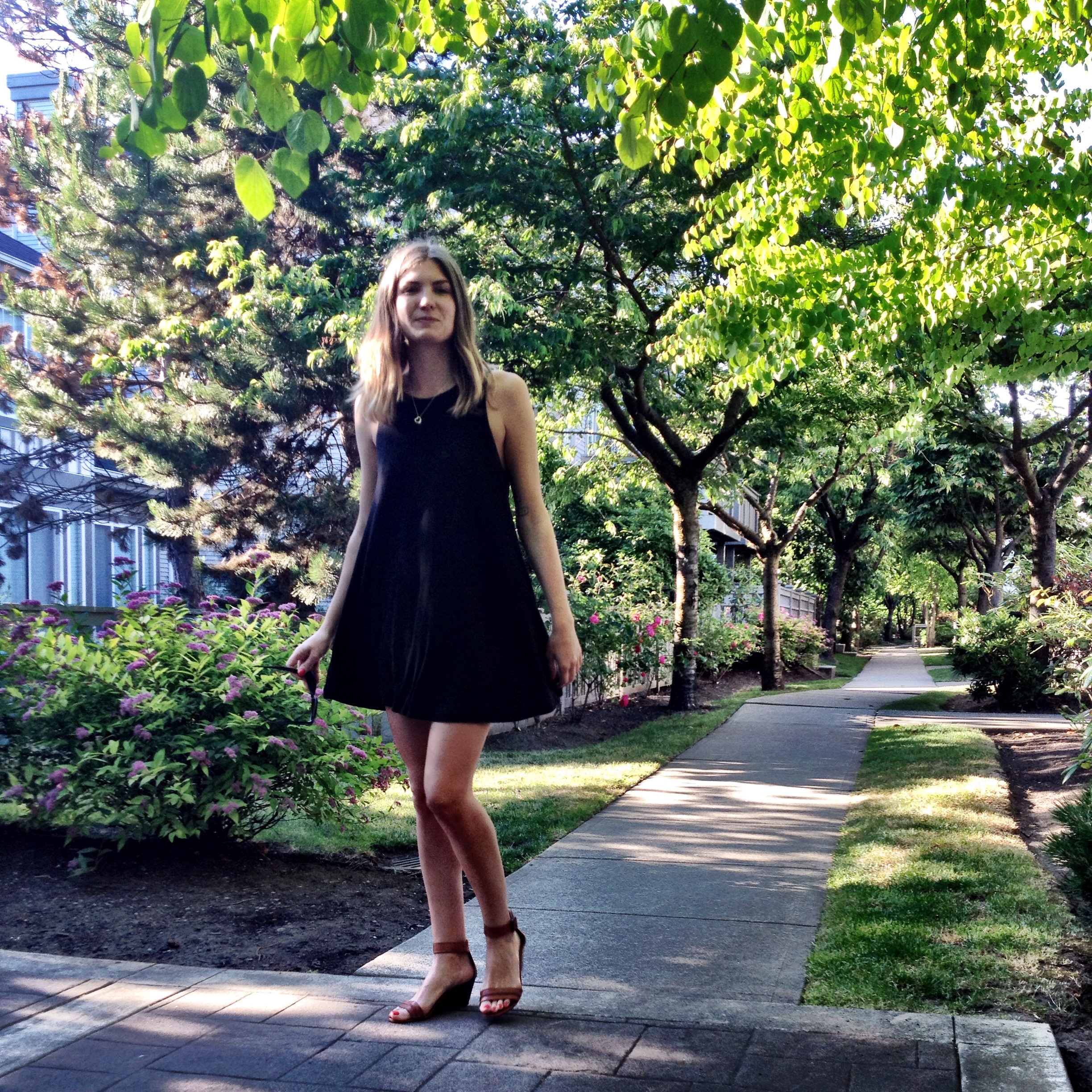 Dress: H&M, Shoes: Steve Madden (Similar), Necklace: Tiffany, Sunglasses: c/o Spy Optics, Bralette: Aritzia