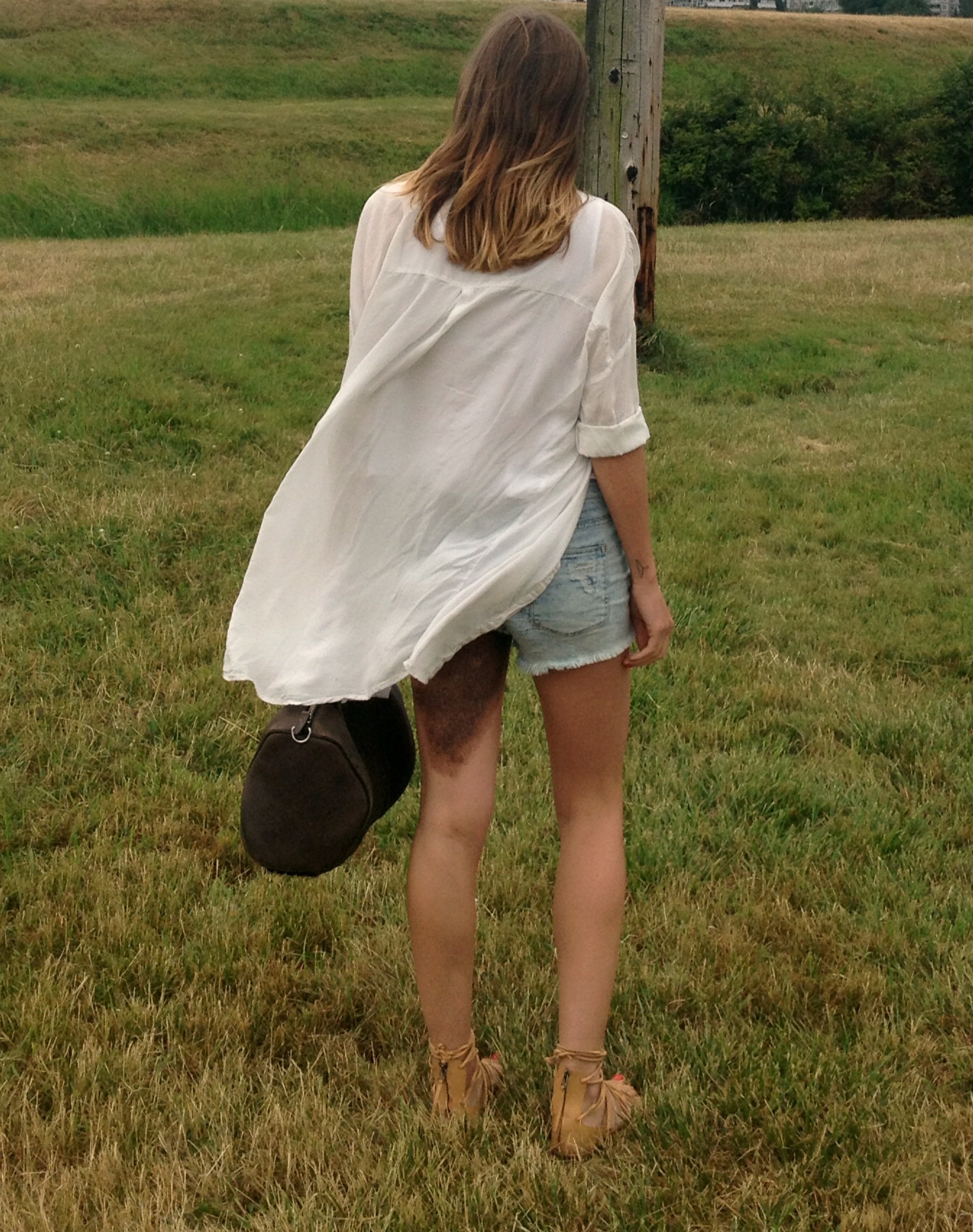 Shirt: Vero Moda (similar), Shorts: H&M, Tank: Forever 21 Sandals: Zara (similar on sale) Bag: Alexander Wang