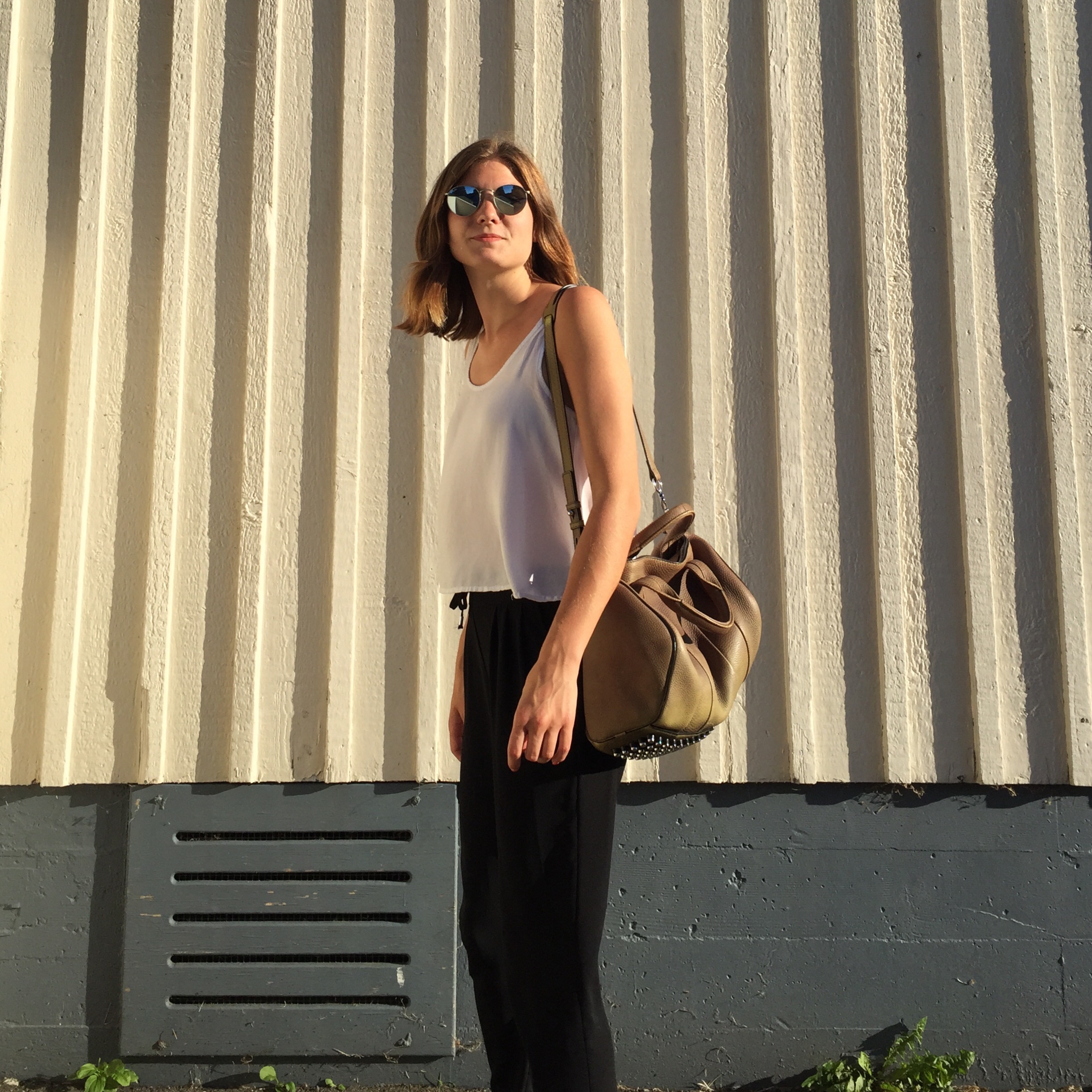 Top: Forever 21, Pants: Zara, Shoes: Ecco Bag: Alexander Wang