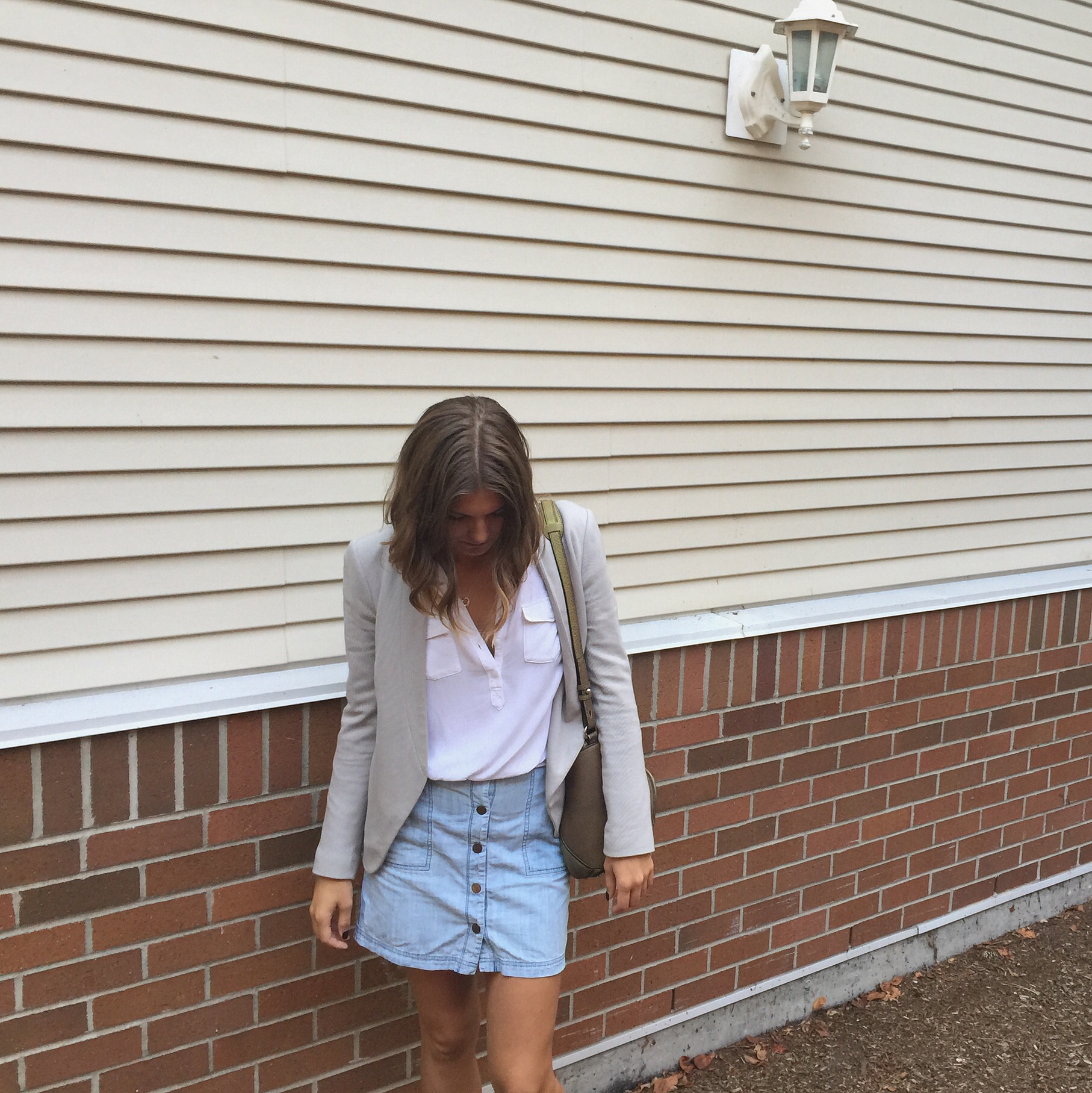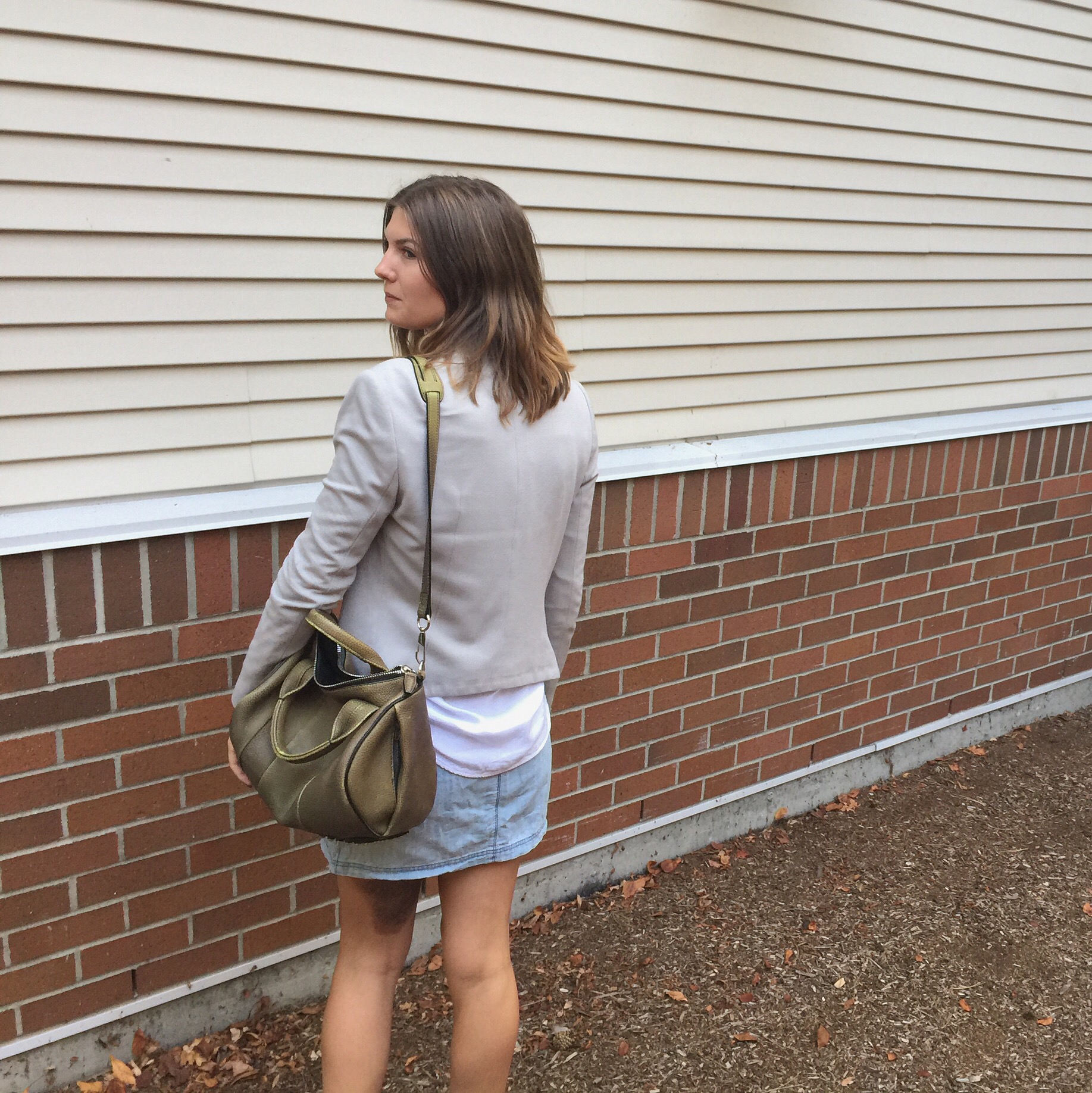 Blazer: Topshop (similar), Skirt: Forever 21 (similar in dark denim), Top: Aritzia, Shoes: Ecco, Bag: Alexander Wang