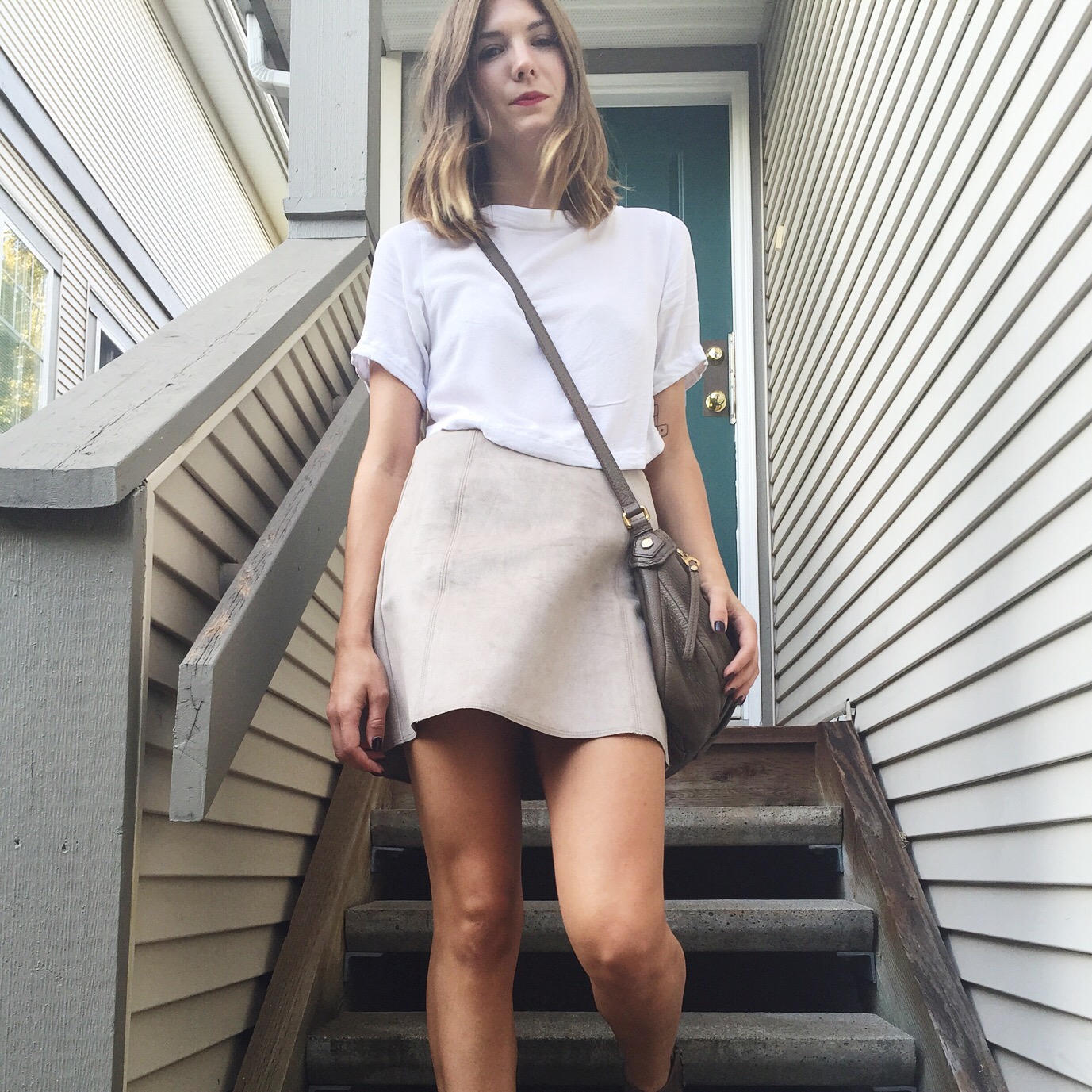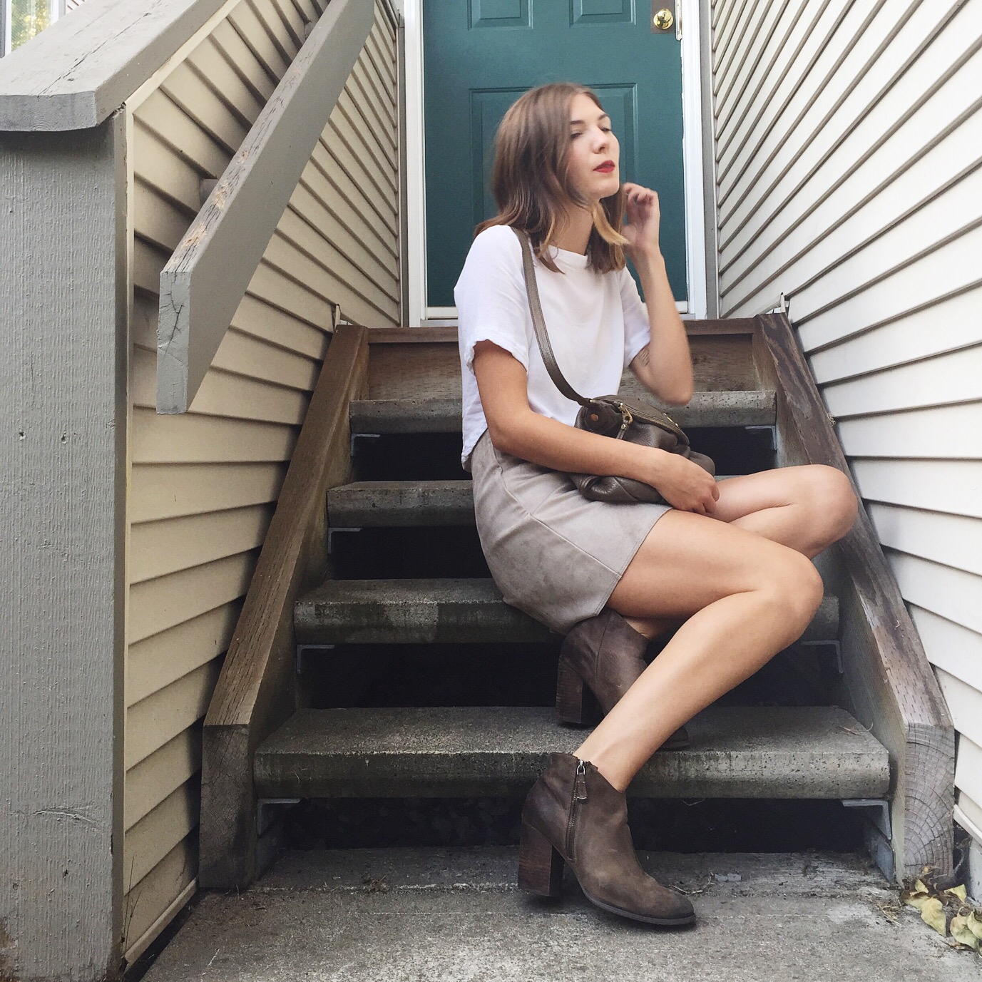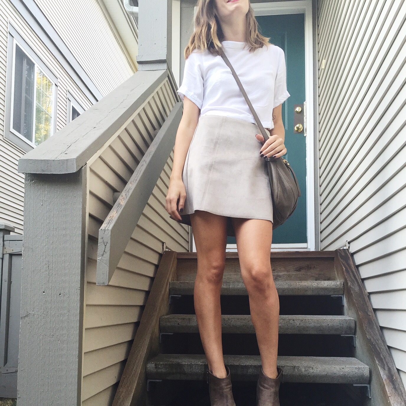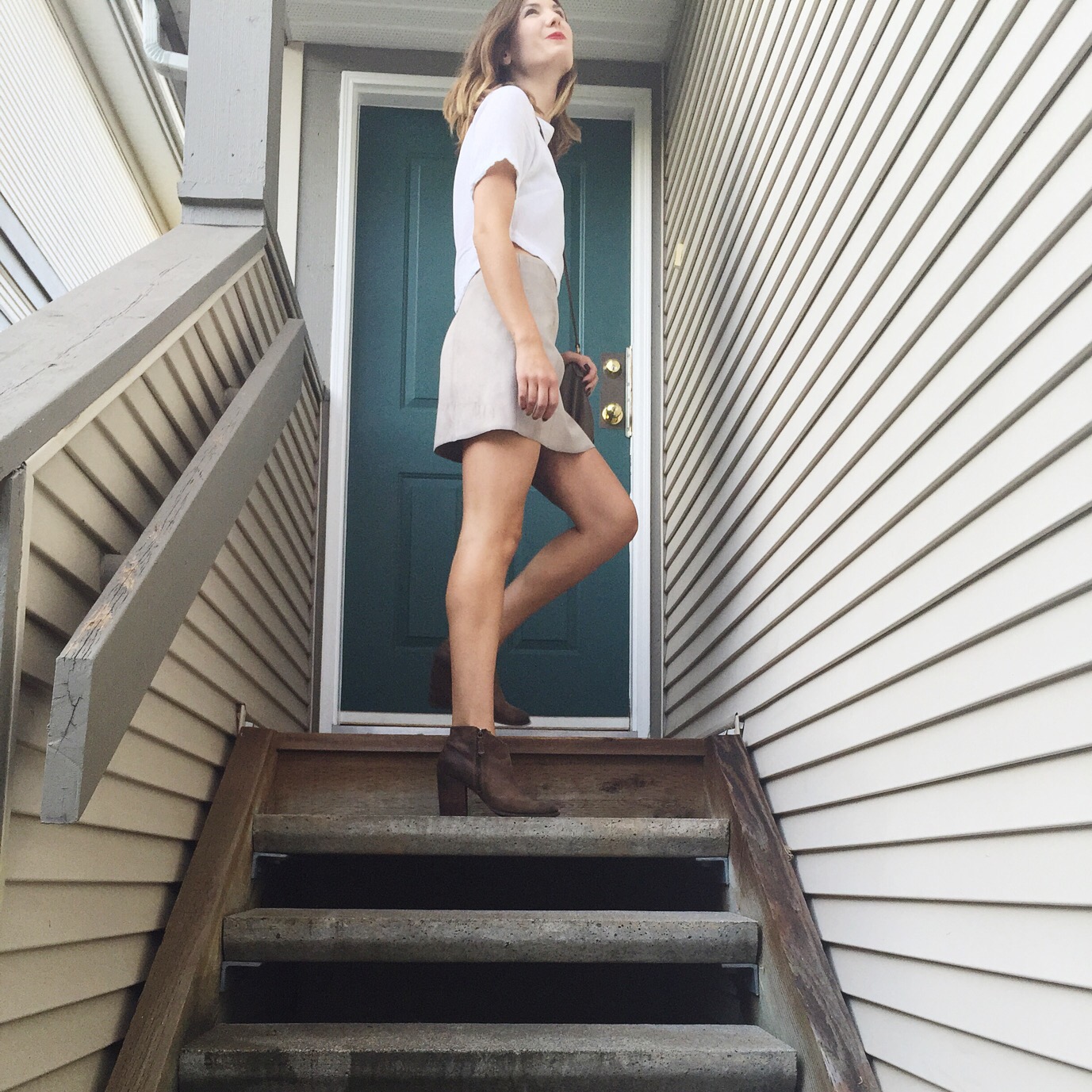 Suede has been one of those 70’s inspired trends that has stuck around the past few seasons, and doesn’t seem to be going anywhere for fall. My old boss had this skirt and I fell in love with it when we went out for dinner last week. I didn’t think I would be into a khaki skirt, but the suede is a really nice update.