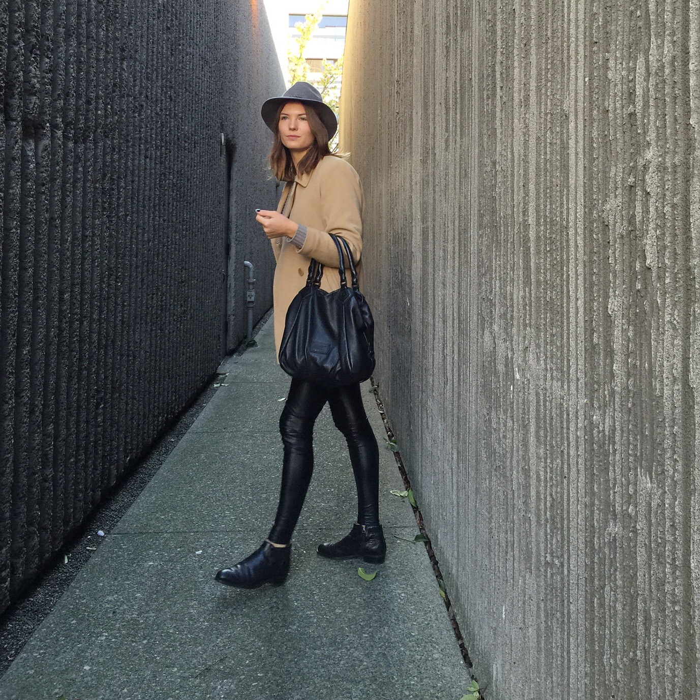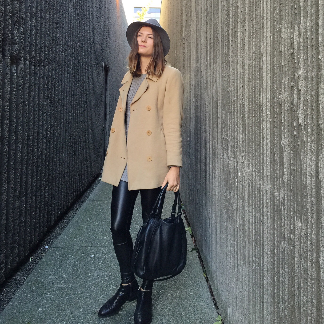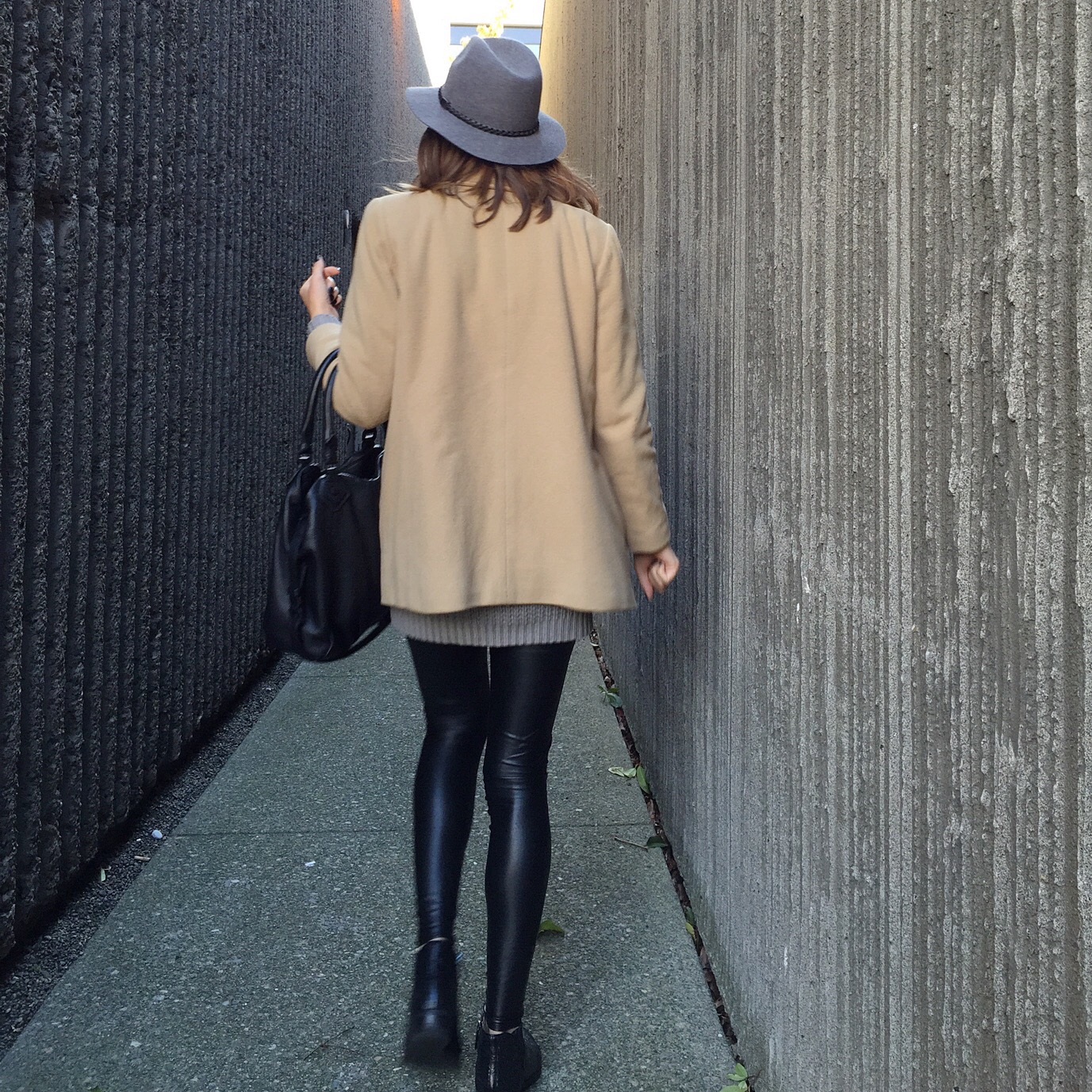Jacket: LL Bean, Leggings: Aritzia, Sweater: Forever 21 (similar), Booties: Ecco, Bag: Marc by Marc Jacobs, Hat: Forever 21 (similar)