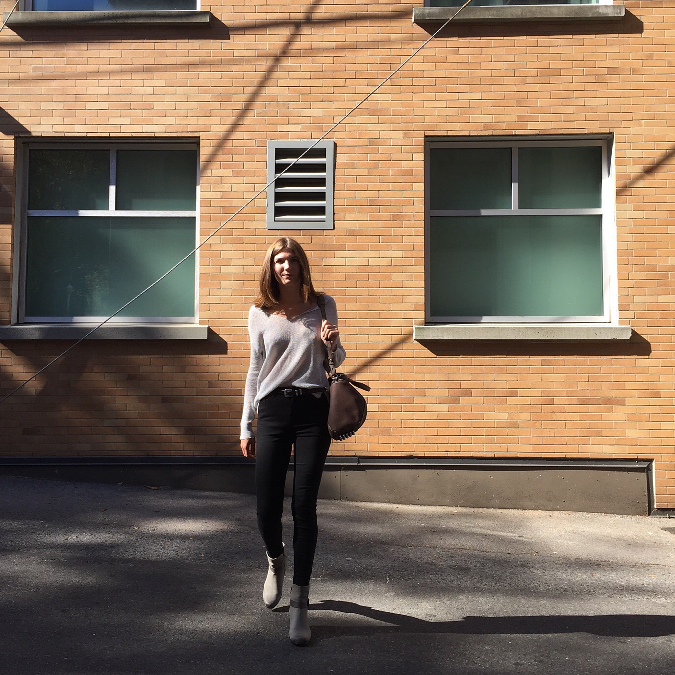 Some of my favourite looks are totally devoid of colour like this one. Grey and black are just so easy to pull together and if you do it right with unexpected textures or details you can sill stand out without any bold hues.