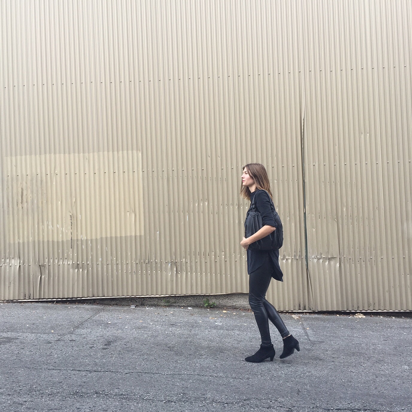Tunic: Aritzia, Leggings: Aritzia, Booties: Ecco, Bag: Marc by Marc Jacobs