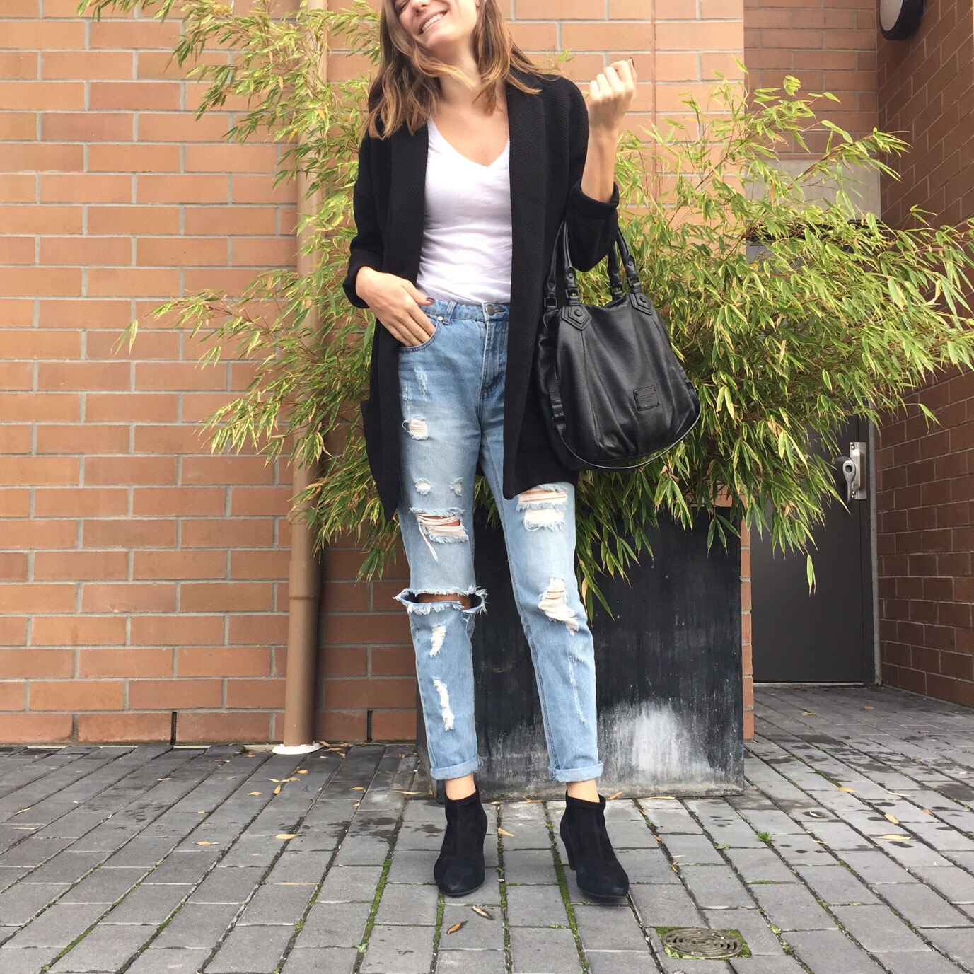 Nothing is more simple than a white tee and jeans, but I particularly love this loose boyfriend fit pair since they are one of the most comfortable I own. Ripped denim doesn’t seem to be going anywhere and neither is this looser shape.