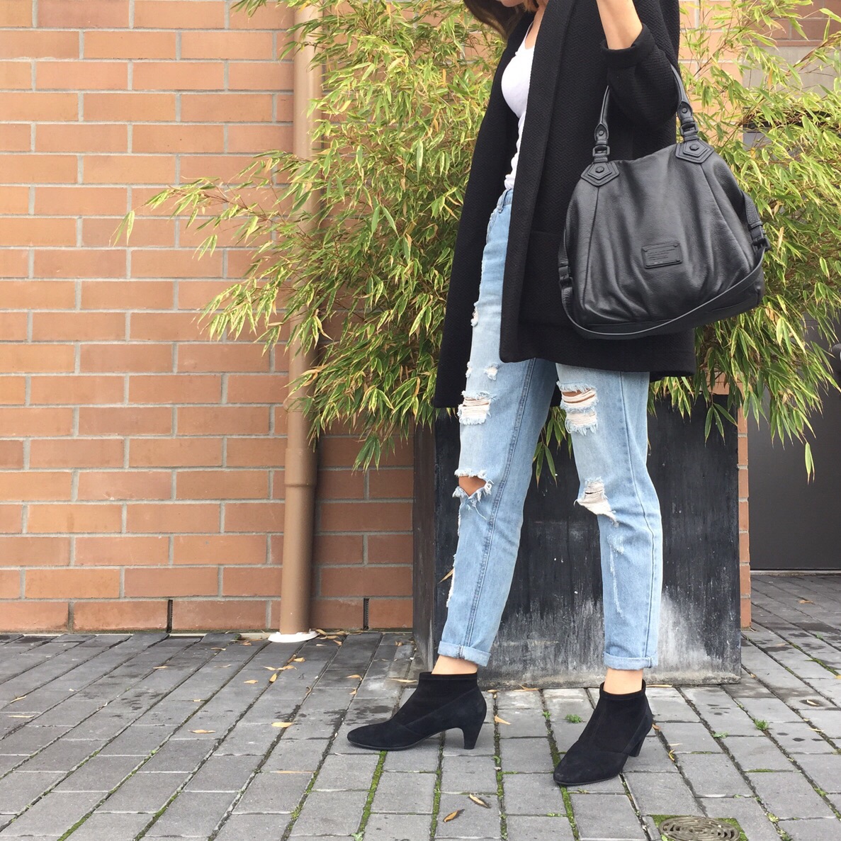 Jeans: Forever 21 (similar), Jacket: Forever 21 (similar), Shirt: Victoria’s Secret Pink, Shoes: Ecco, Bag: Marc Jacobs