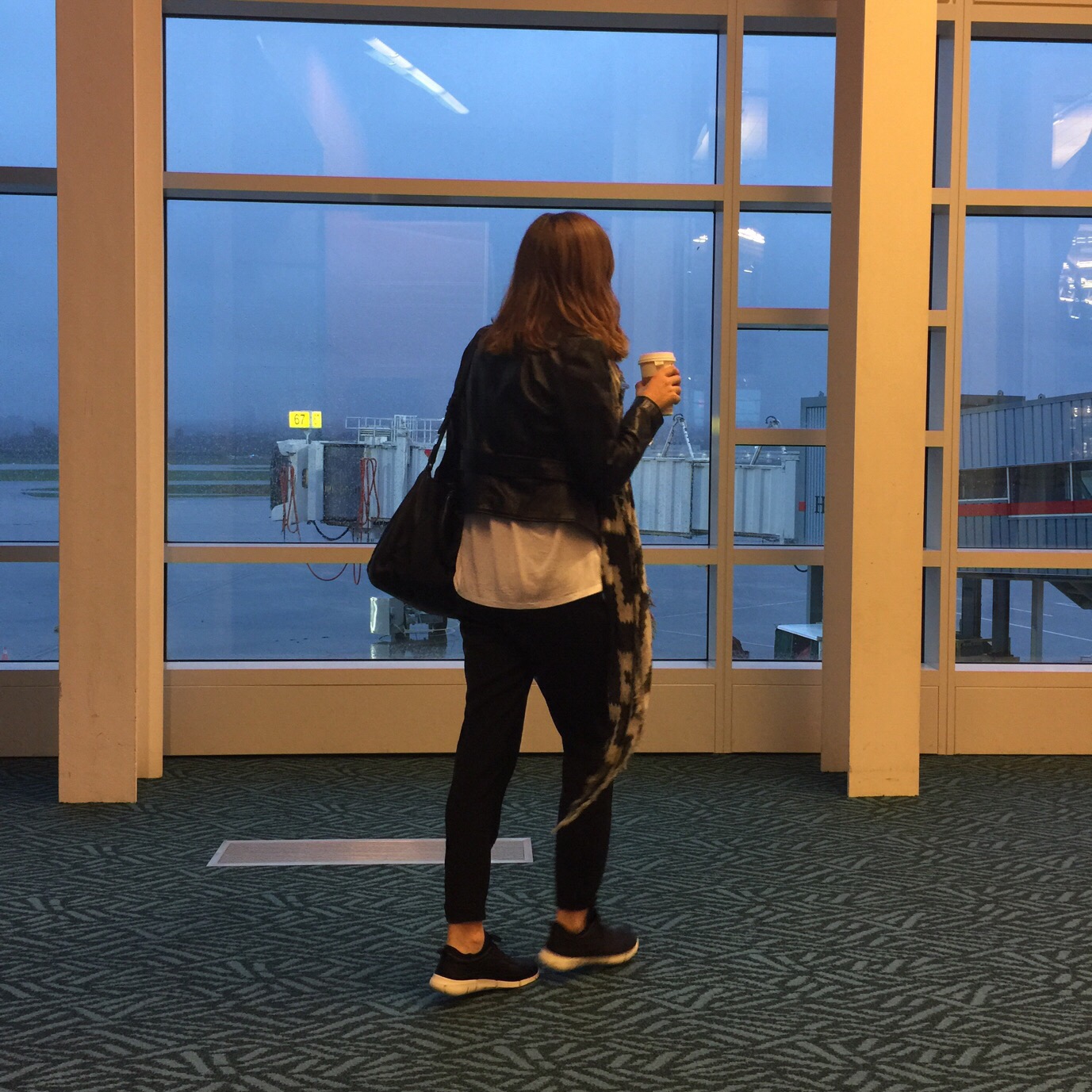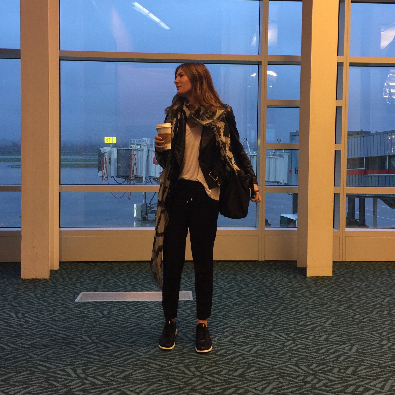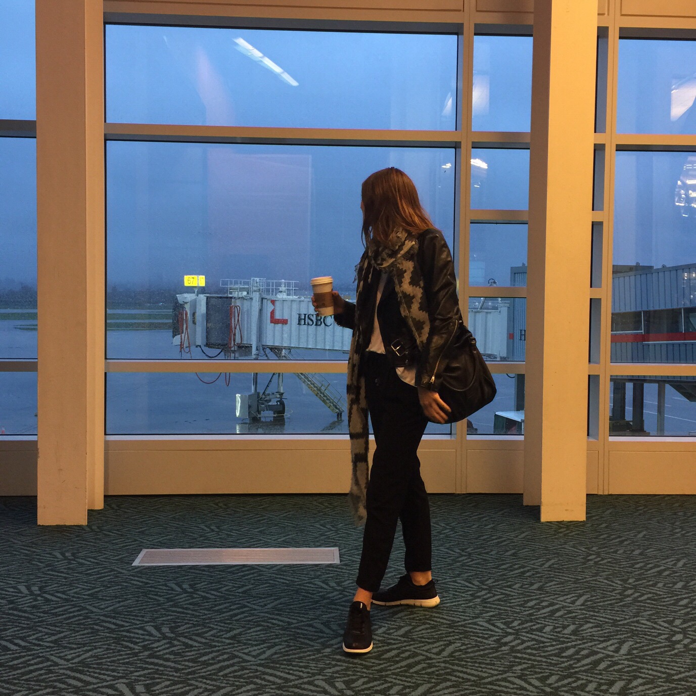 I generally fly in comfortable heels to be a bit more dressed up, but it was pouring rain in Vancouver this morning and I wanted a solid pair of sneakers to wear if we do some kind of excursion on the trip. These new leather sneakers are very lightweight and sleek, and feel awesome on. They also look pretty sharp for a casual shoe.
