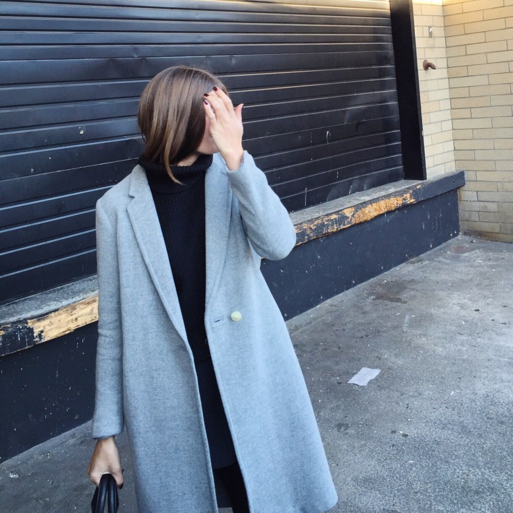 Like most people, I layer a lot in winter. I’ve just realized that this favourite tunic of mine works amazing under sweaters. The longer length and the mandarin collar make it fit seamlessly under a variety of sweaters, the thick silk giving some good warmth too. This black merino wool turtleneck has been on heavy rotation during any cold weather since last fall. The fine knit keeps me warm and cozy under this thinner jacket and the turtleneck works double duty as a new hair accessory.