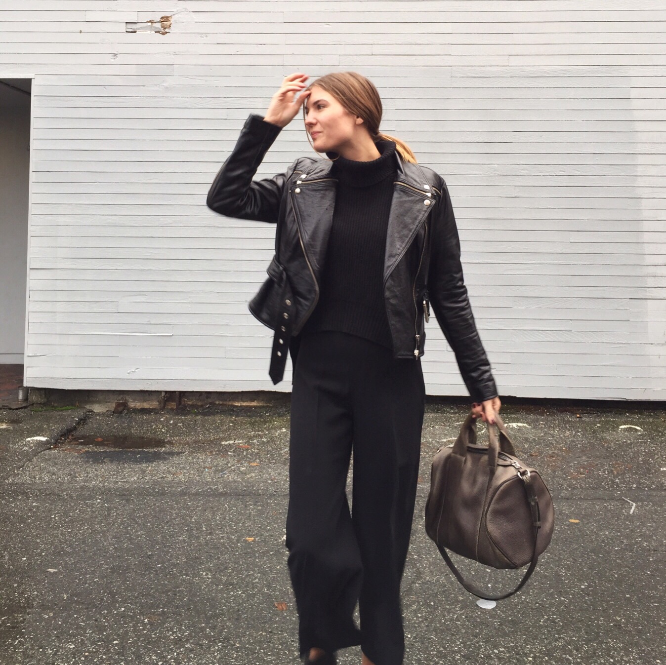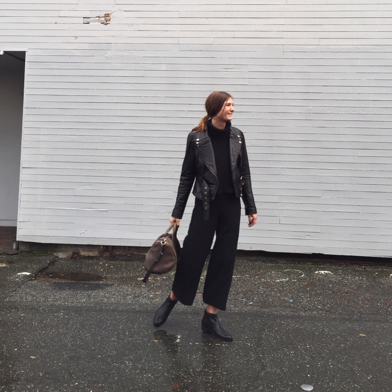 Culottes: Zara, Turtleneck: Aritzia, Jacket: similar from Aritzia, Shoes: Ecco, Bag: Alexander Wang