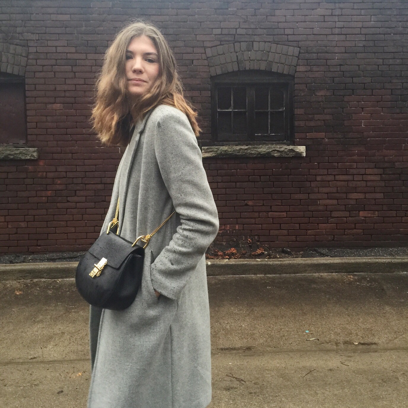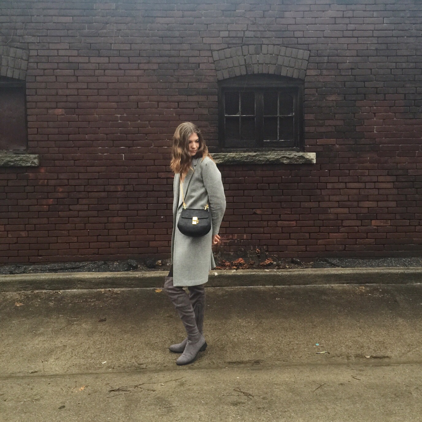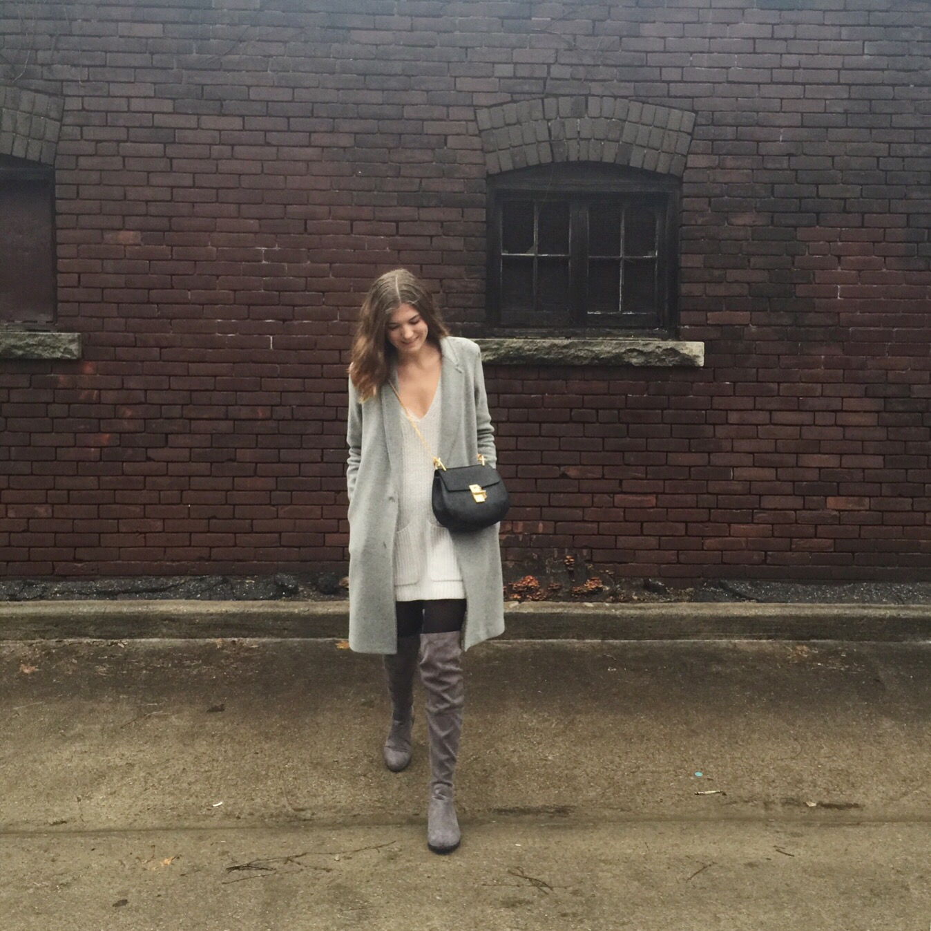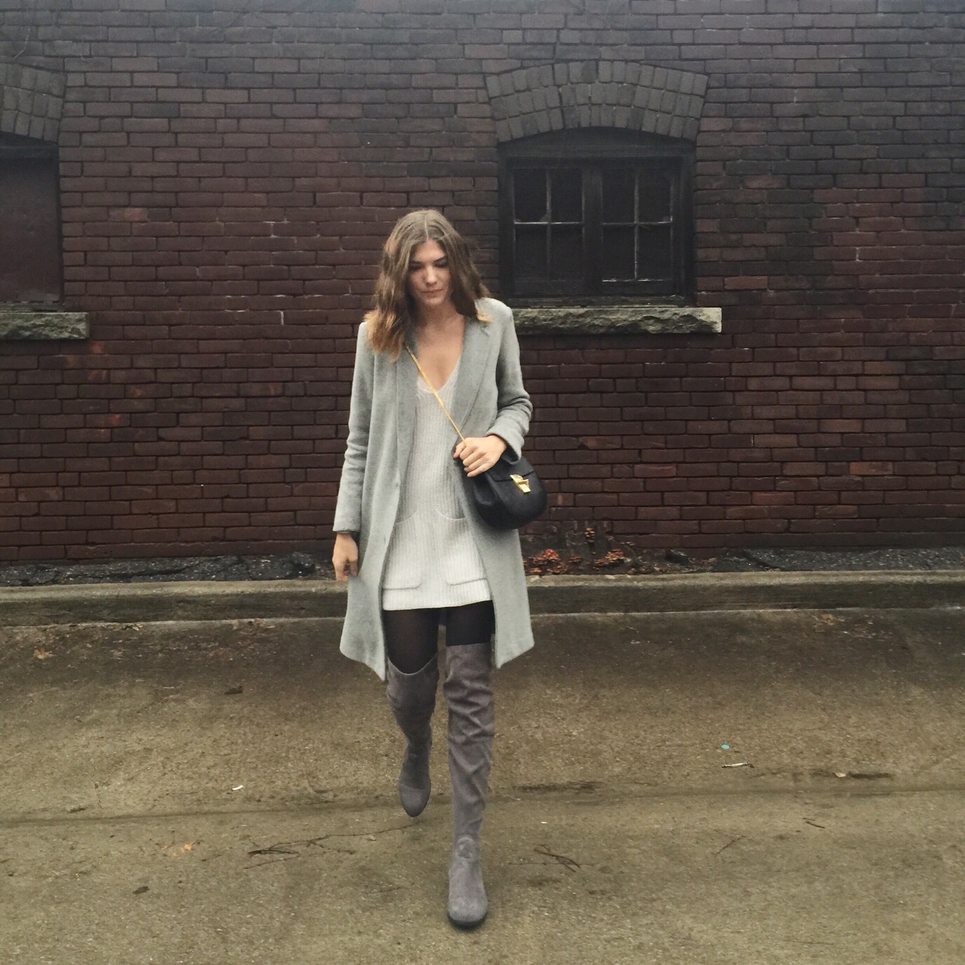 Boots: Forever 21 (sold out online), similar from Aldo, Coat: Aritzia, Sweater Dress: Aritzia, similar here (I sewed up the split sides), Bag: Chloe
