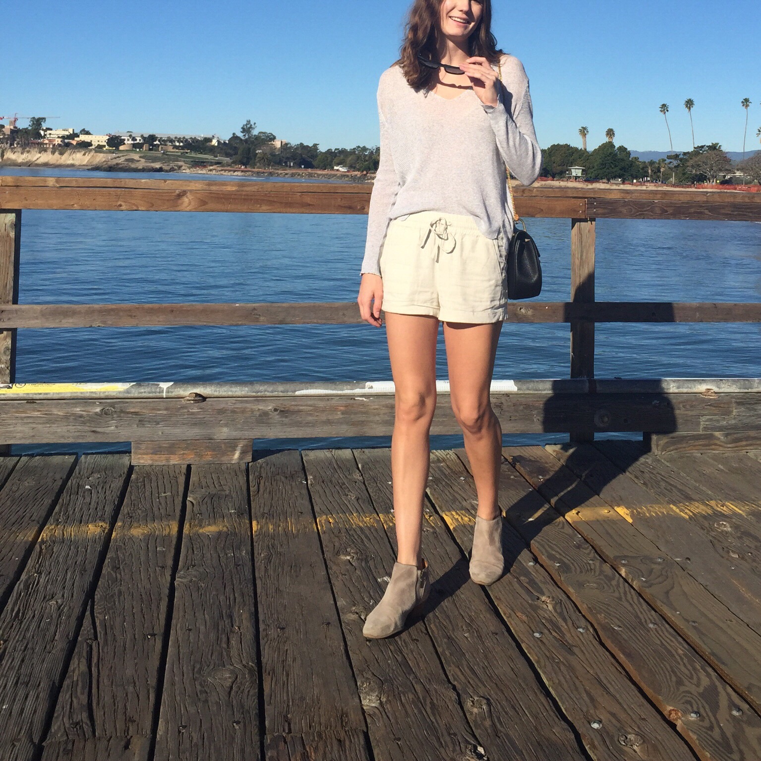 Nothing says beach like an all light, neutral pallet of tan, grey and some huge sunglasses! These shorts will be a great staple this summer, though I do wish I was still under the lovely California sun and not in rainy Vancouver right now.