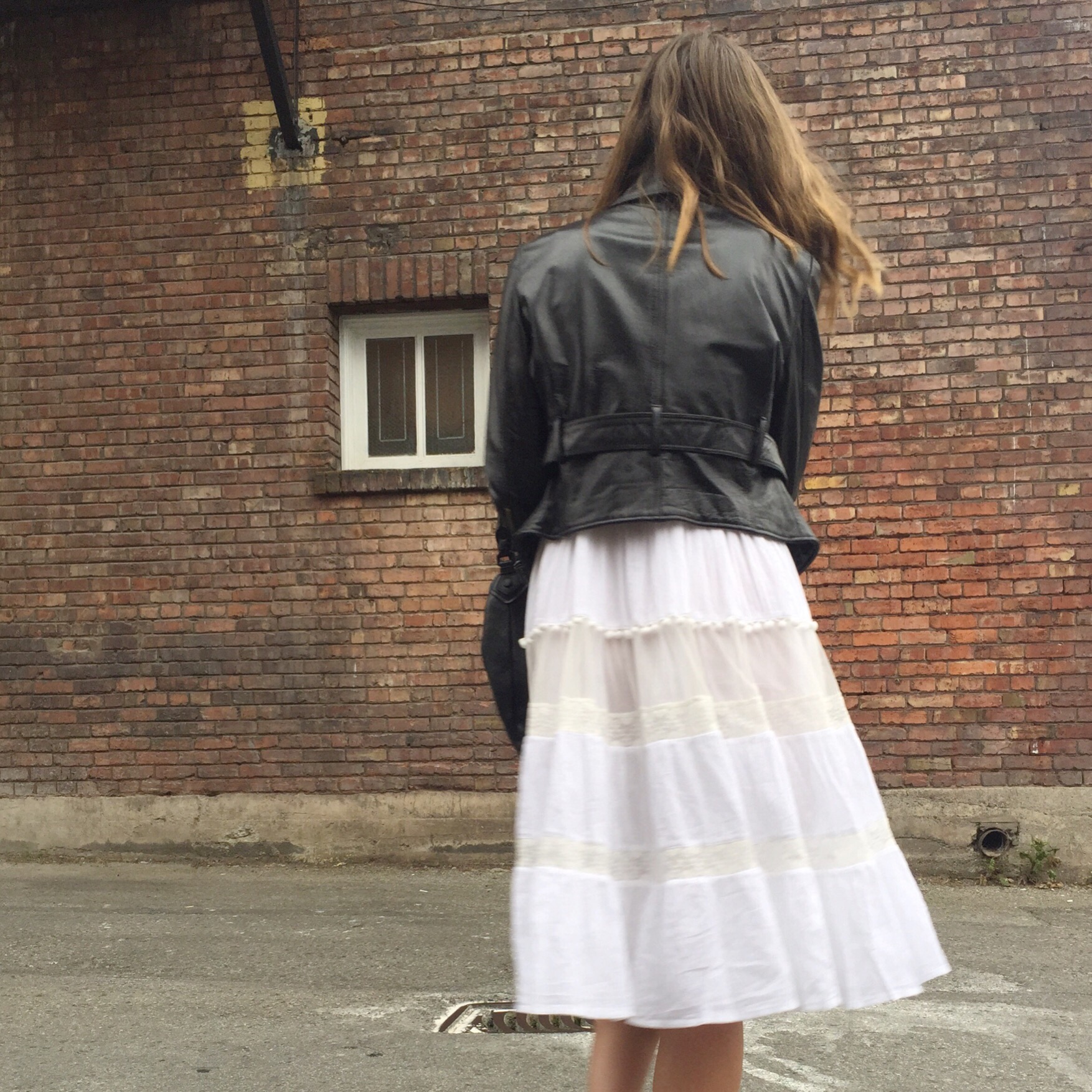 Dress: c/o eShakti, Leather Jacket: Consignment ($$$ or $), Shoes: Ecco