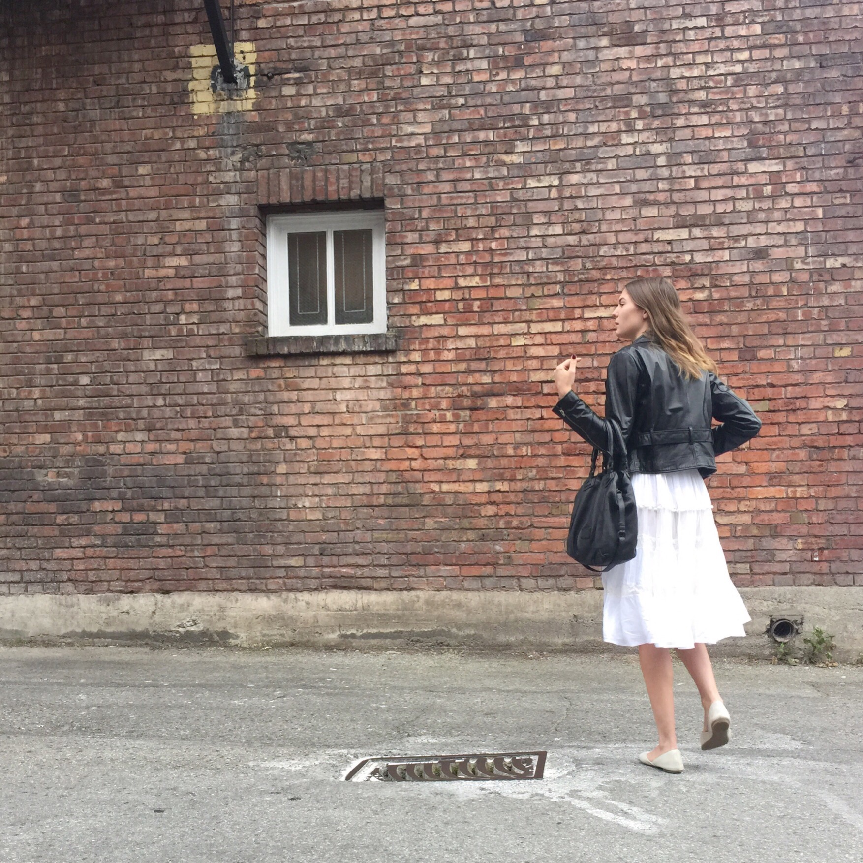 Dress: c/o eShakti, Leather Jacket: Consignment ($$$ or $), Shoes: Ecco