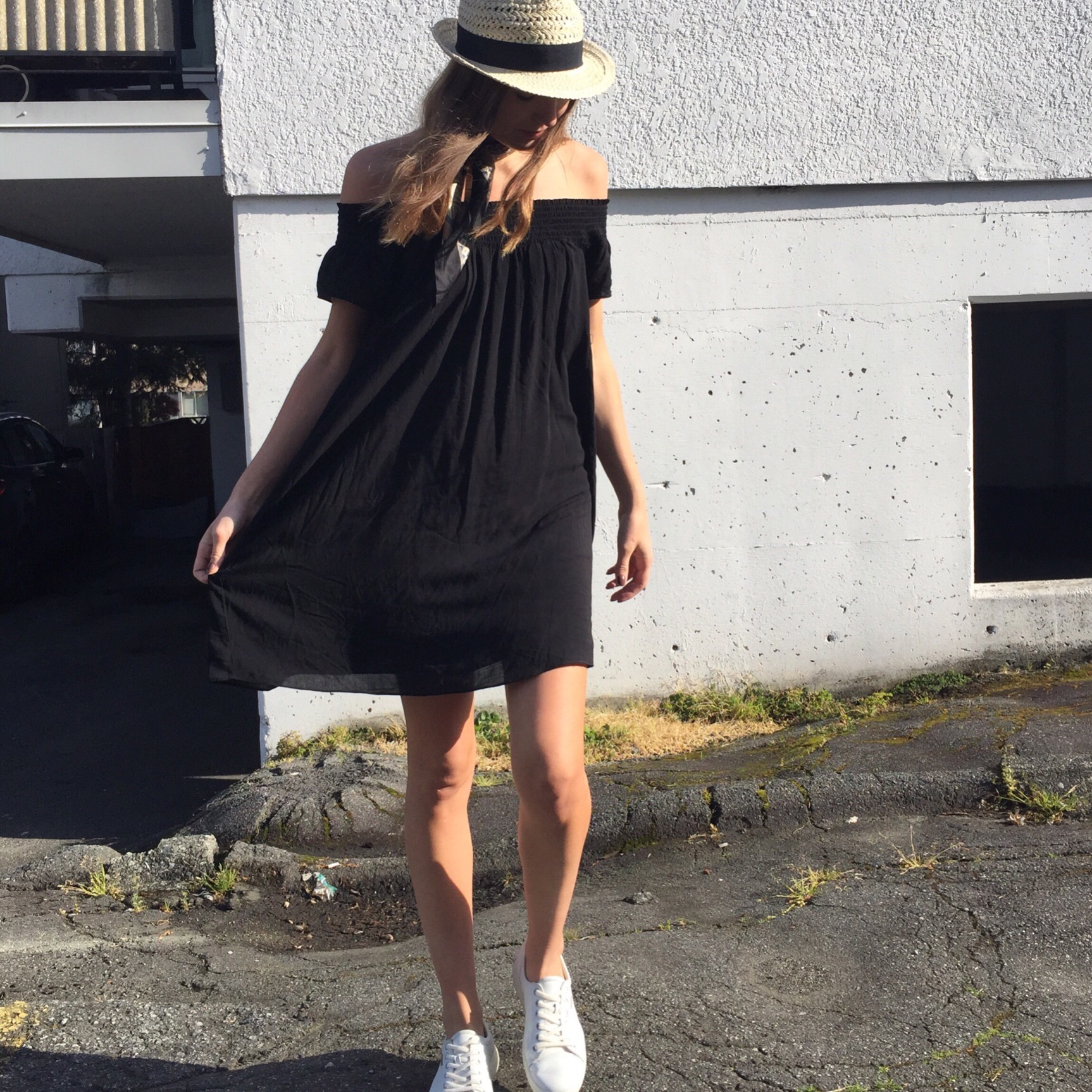 This off the shoulder dress is something I haven’t even properly been able to wear yet, and will be the first thing in my suitcase. Loose dresses are my absolute favorite hot weather look because they are so breezy require zero effort. This ease is especially important when you’re covered in greasy sunscreen and just can’t be bothered!