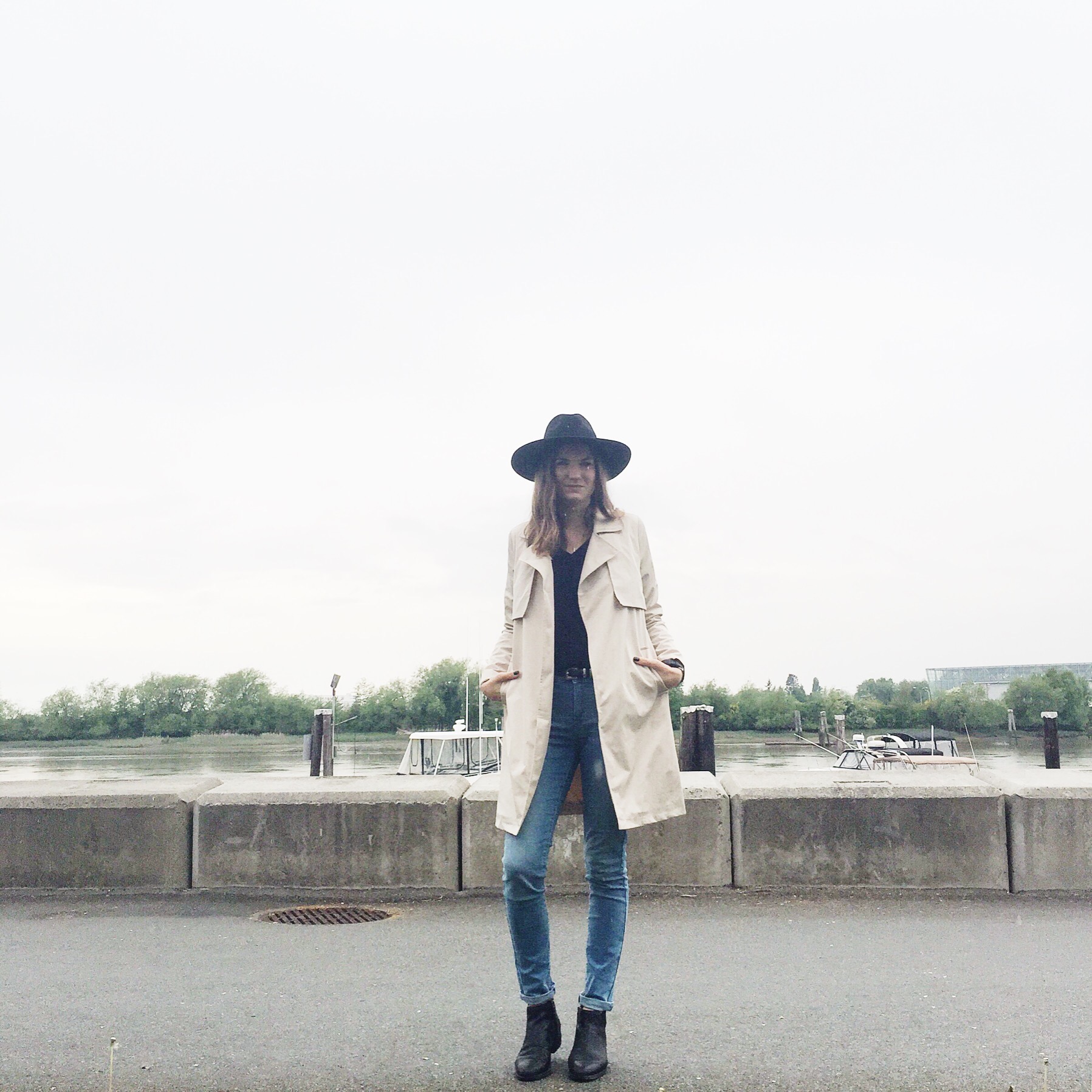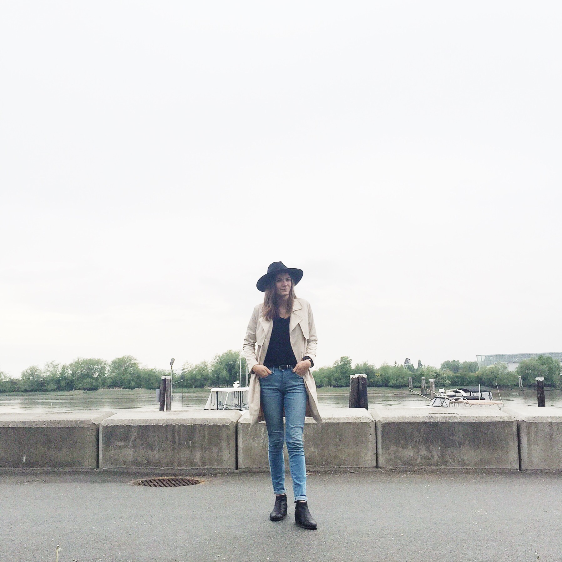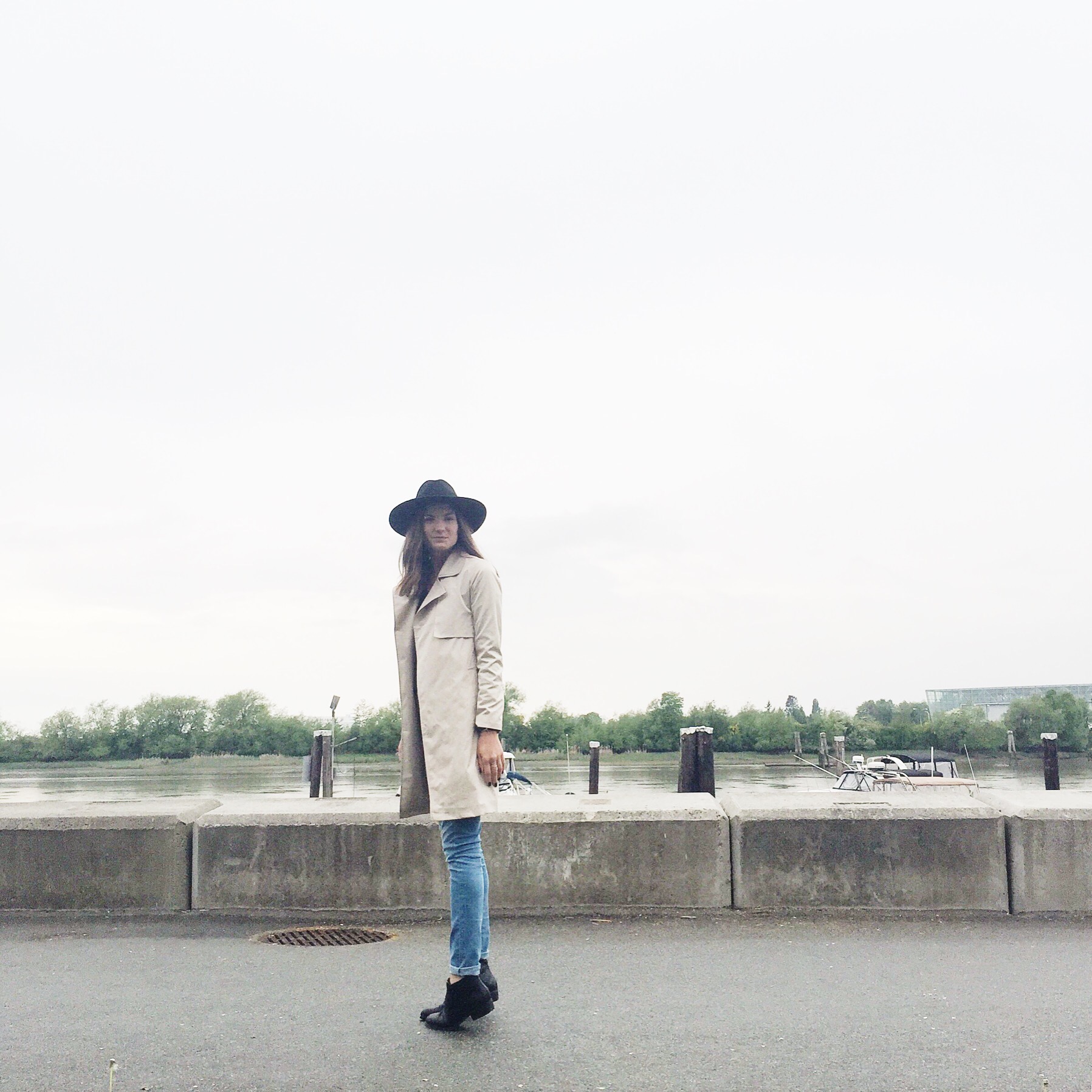 Trench: Forever 21 (similar water repellent from Zara), Hat: Joe Fresh (similar from Forever 21), Jeans: Levis, Shirt: Aritzia, Boots: Ecco (similar), Belt: Zara (similar from Forever 21)
