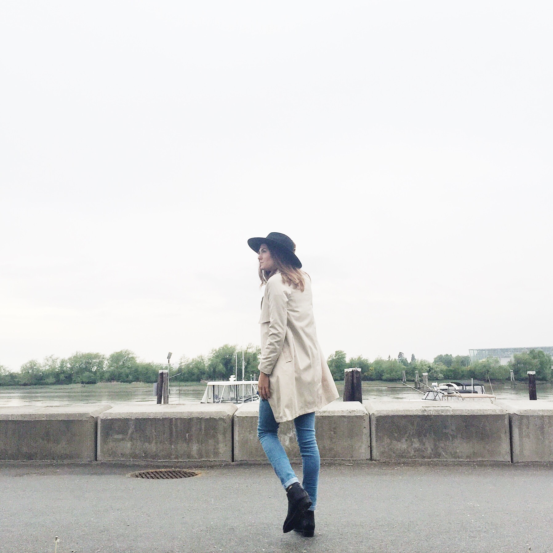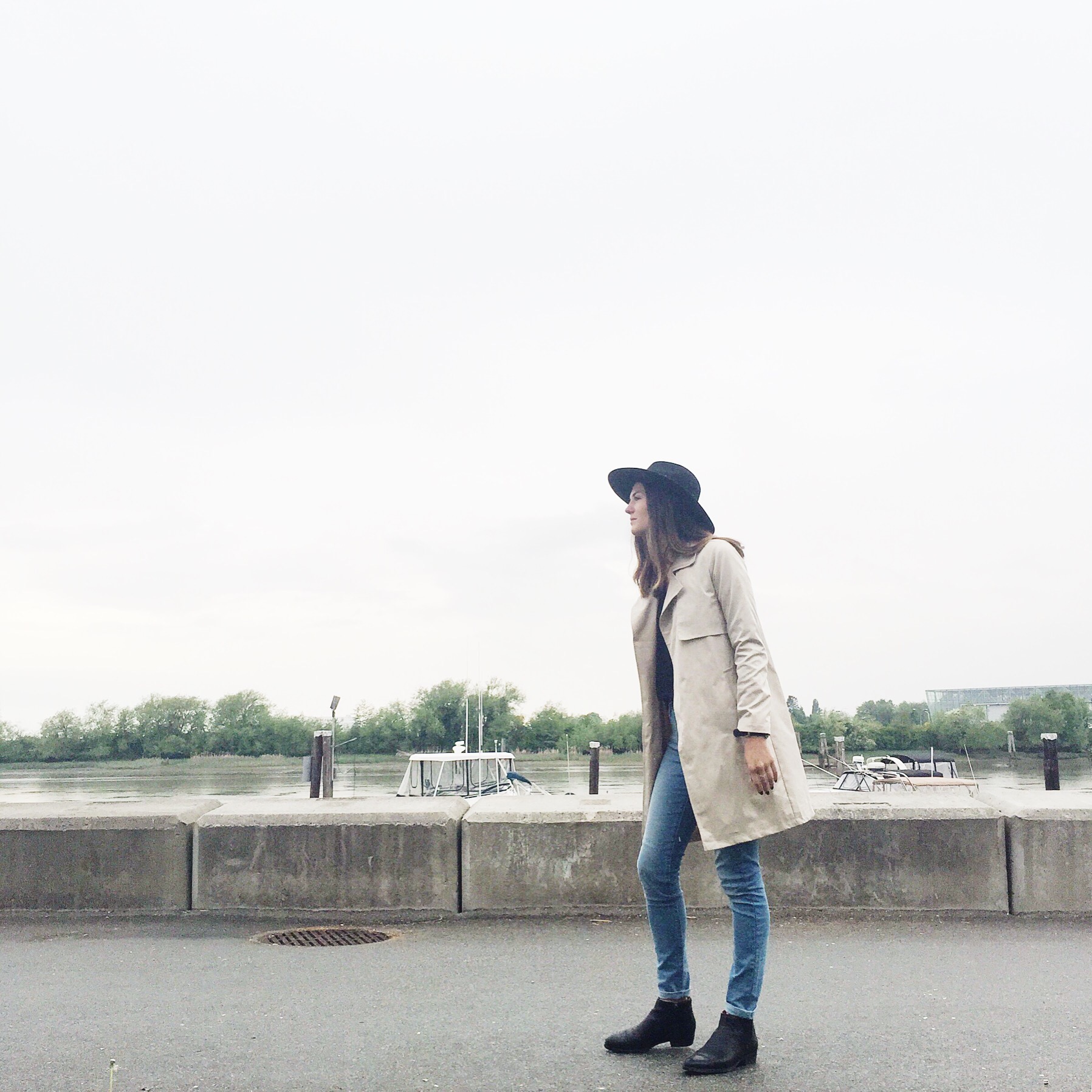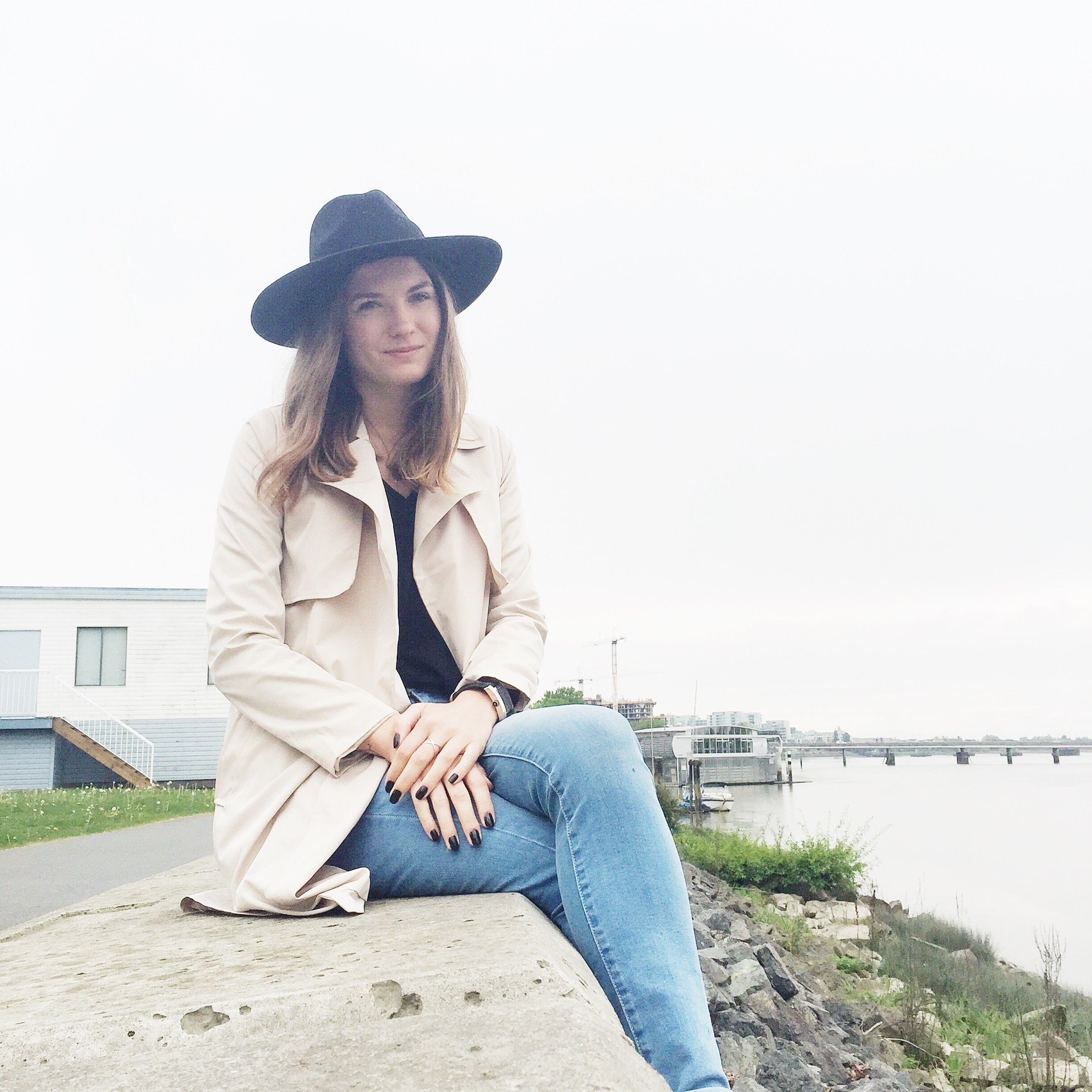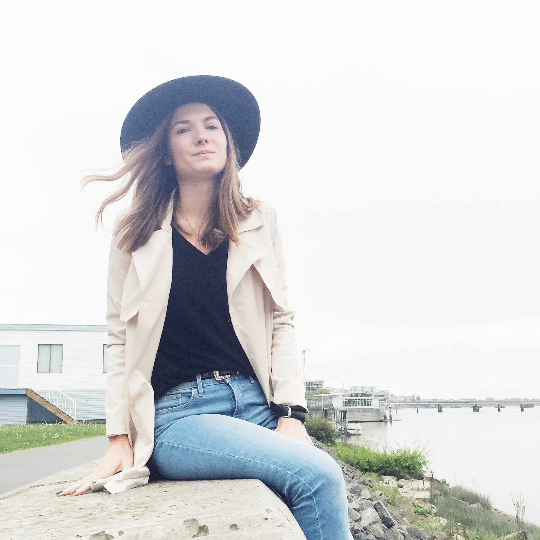 Trench: Forever 21 (similar water repellent from Zara), Hat: Joe Fresh (similar from Forever 21), Jeans: Levis, Shirt: Aritzia, Boots: Ecco (similar), Belt: Zara (similar from Forever 21)