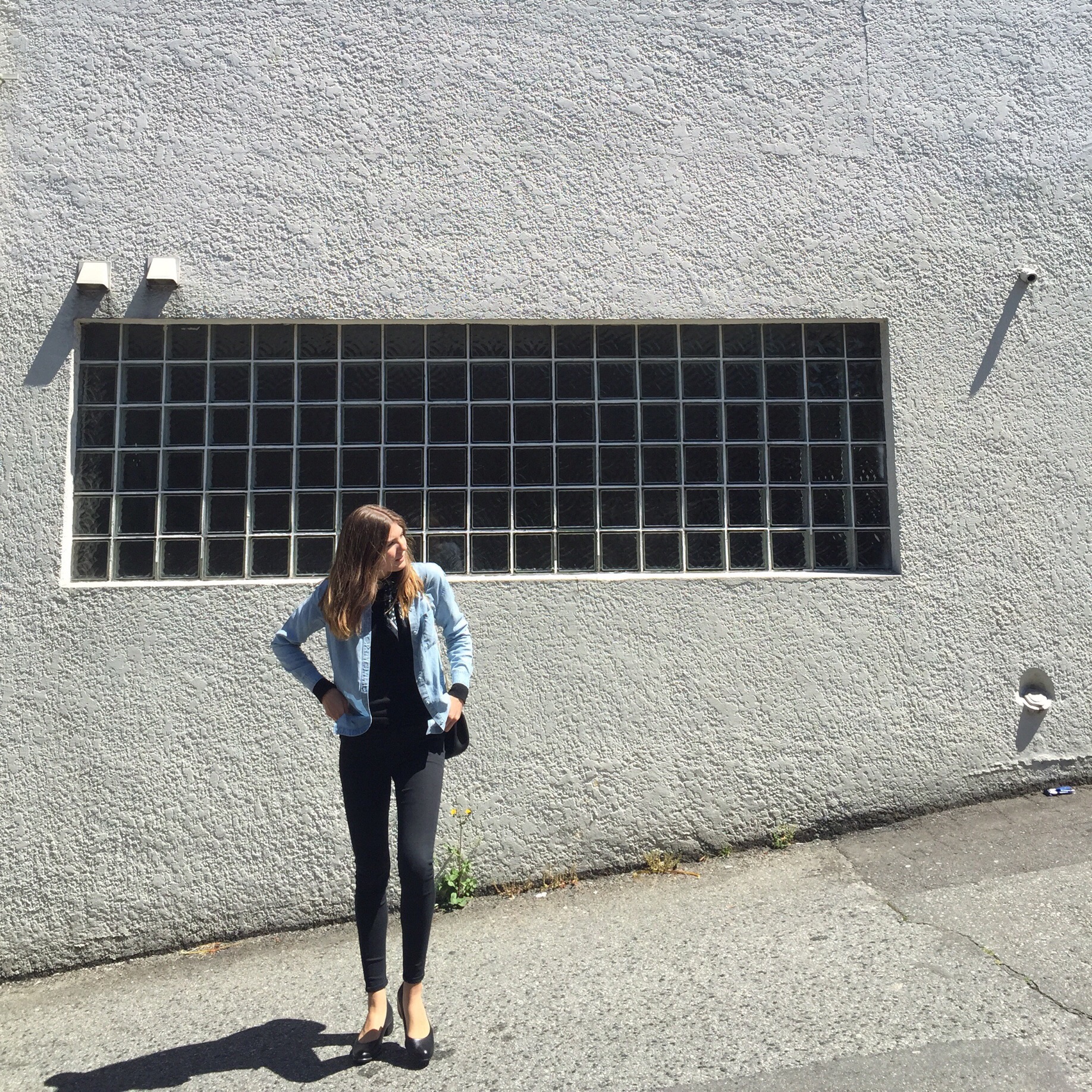 Denim Shirt: Aritzia, similar from American Apparel, Sweater: Similar from Forever 21, Pants: TopShop, Shoe: ECCO