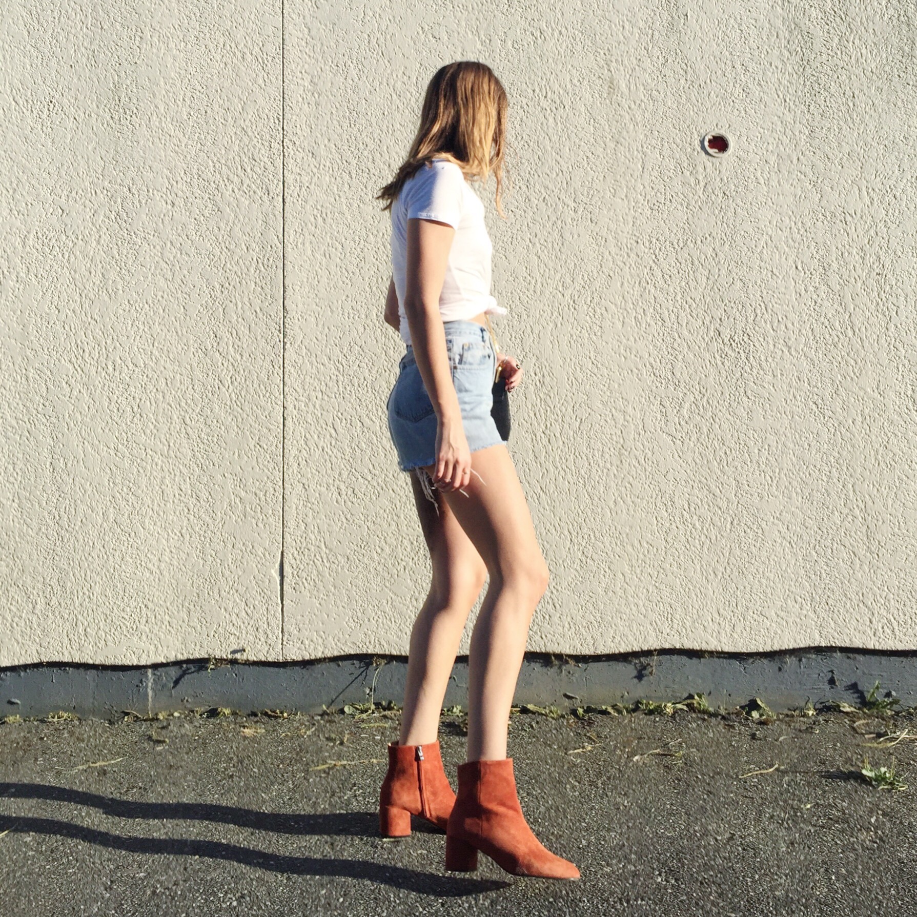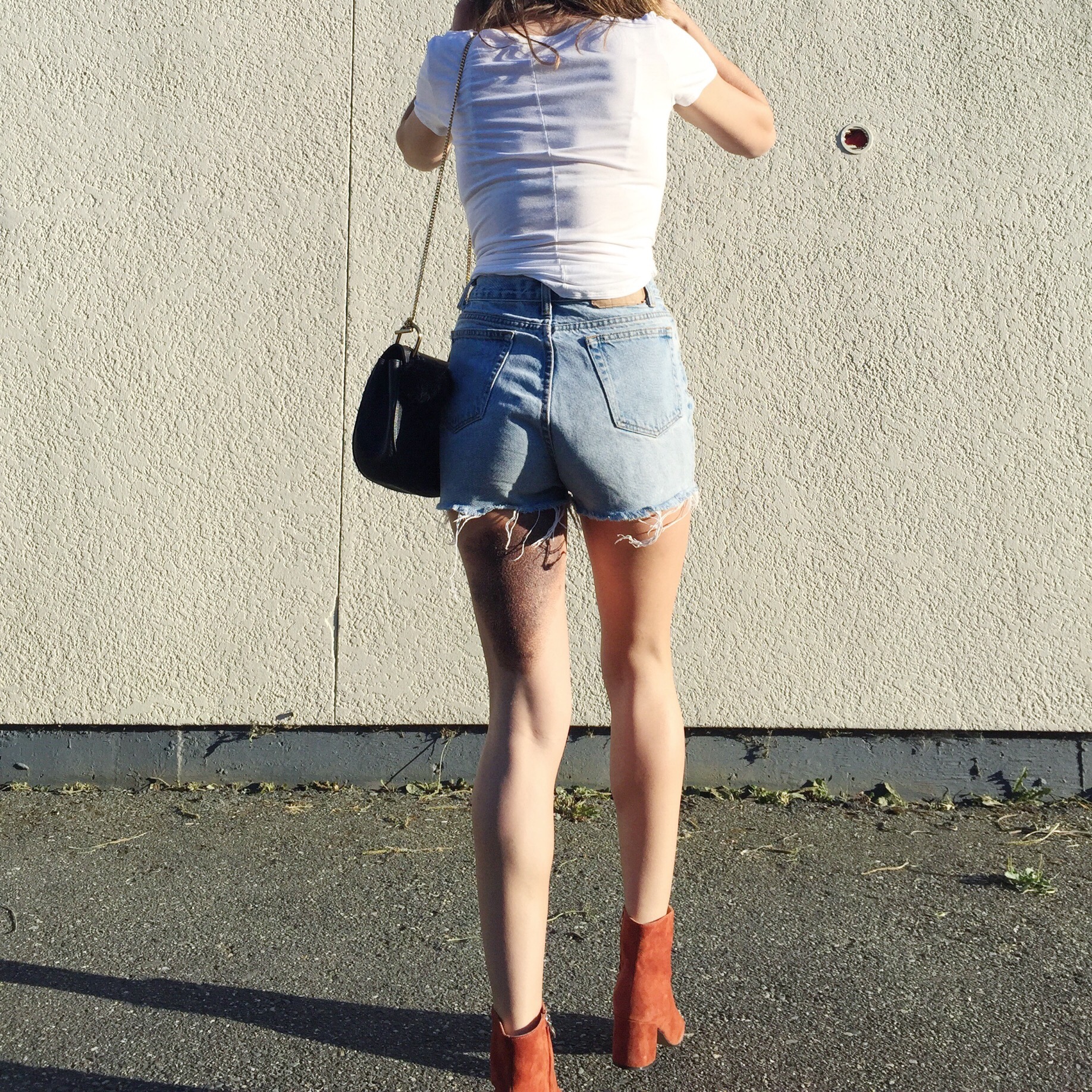 Now just wash + dry to get the hems looking frayed, and you’ll have a perfectly lived in looking pair of cut offs to wear for the rest of the summer. If you decide to cuff your new shorts, use an iron to press the fold into place permanently.