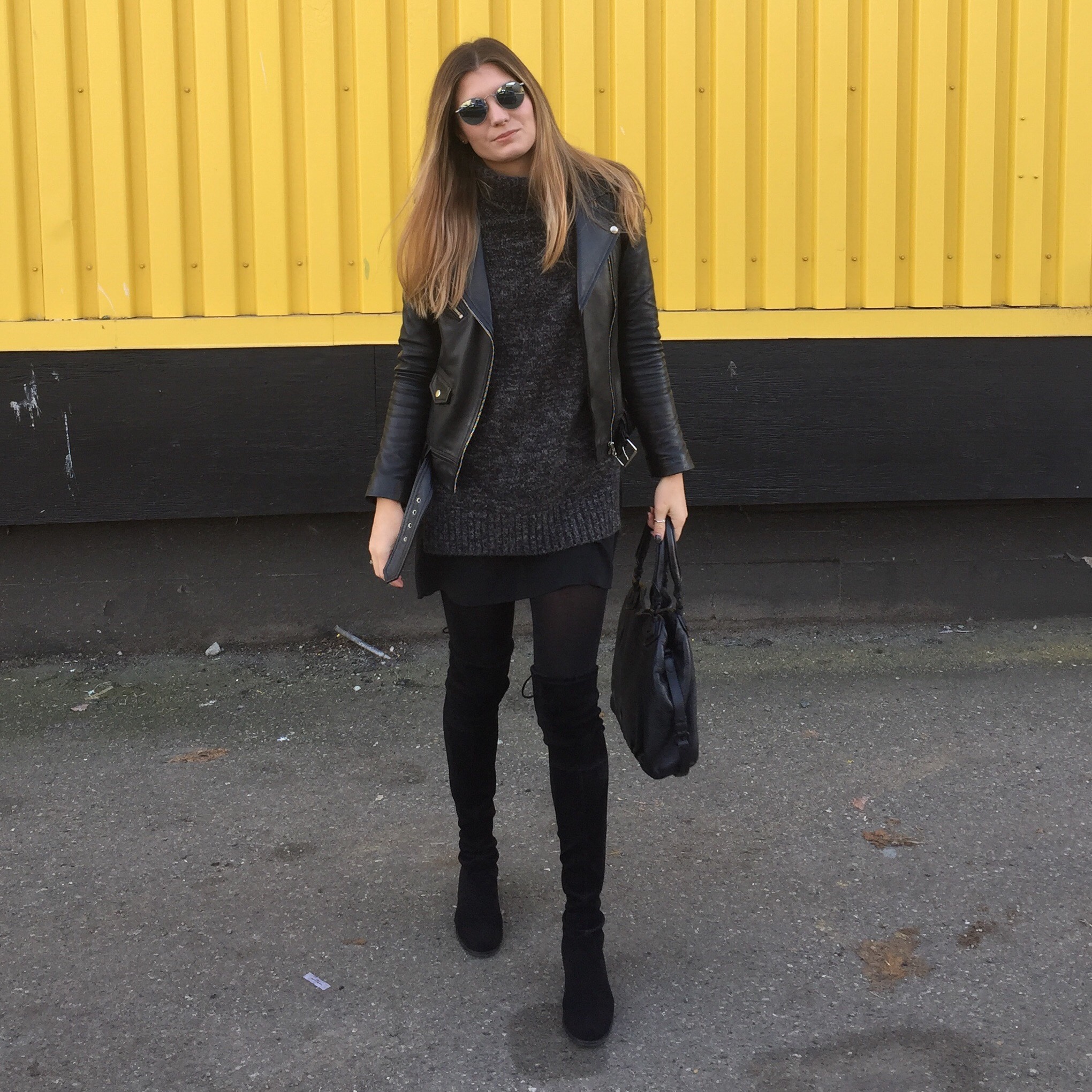 Leather Jacket. Okay so this is a year-round staple in my closet. It’s not my everyday jacket choice in the winter, but on a sunny day like today it’s great with a thick sweater. Layer to make it work!